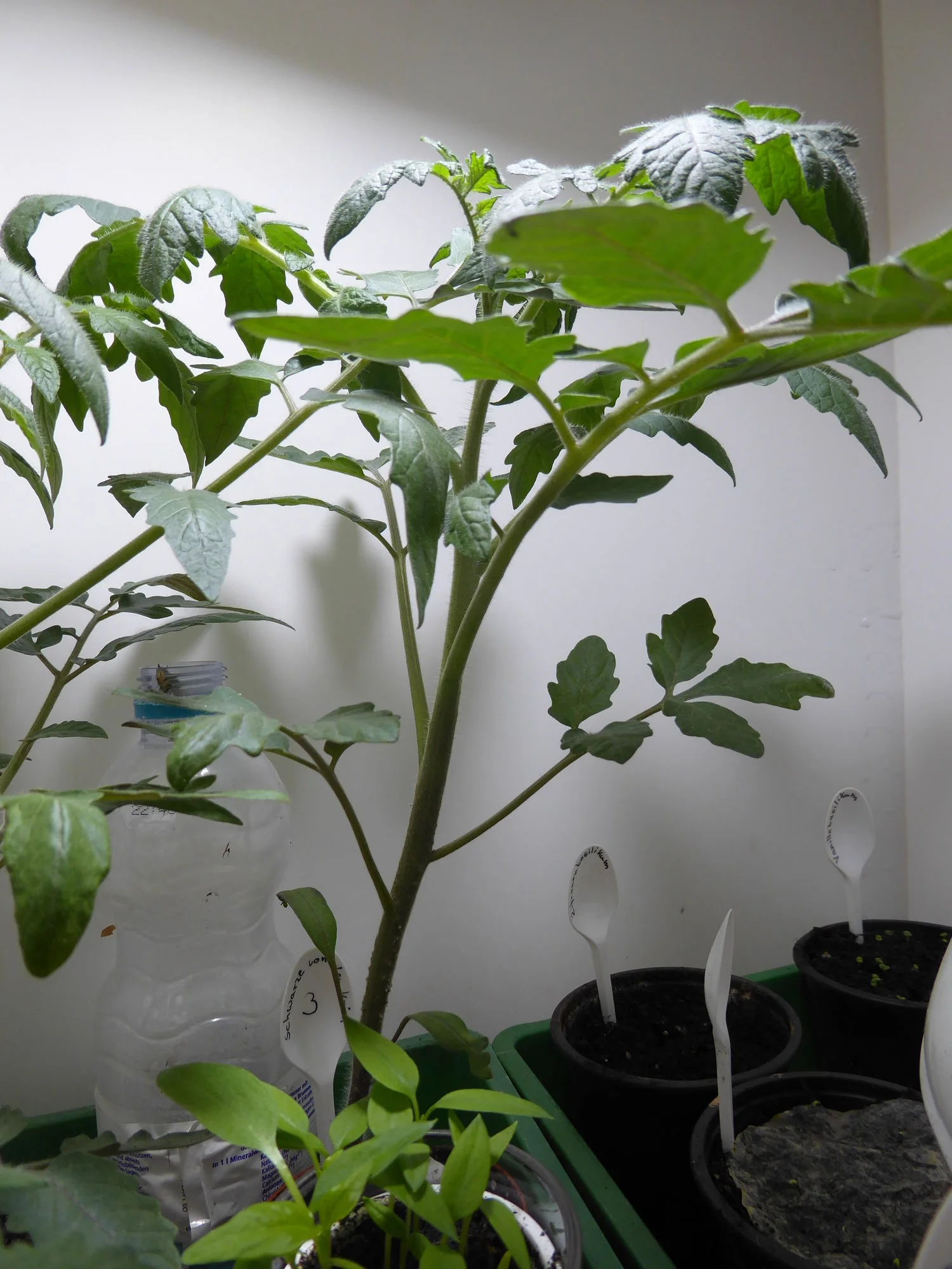 Im Großen und Ganzen alles prächtig hier. Die beiden "gelben" wurden durch trocken legen auch wieder grün und holen auf. Da ich zu viele Tomaten gesät hatte werden die einigen "Rohrkrepierer" nicht stören.
