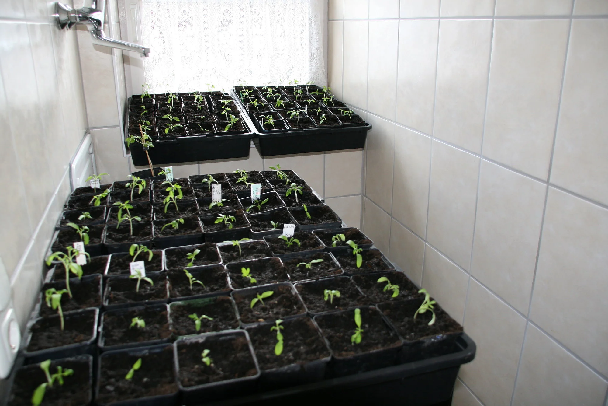Ich habe meine Tomaten heute pikiert, insgesamt 108 Stück. Ca 20 brauche ich nur selber. Jetzt brauchen sie nur noch wachsen. Habe sie heuer das erste mal drinnnen pikieren müssen, es ist so kalt draußen, nur + 3 Grad. Diesen Schock wollte ich ihnen nicht antun. Etliche Sorten sind gar nicht aufgegangen, der Samen war schon zu alt. Ich hatte schon damit gerechnet, dann kann ich ihn gleich wegschmeissen. Habe sie im hinteren Hausflur , da ist es relativ kühl und hell. Bis Mitte Mai sind sie dann schon zum auspflanzen.