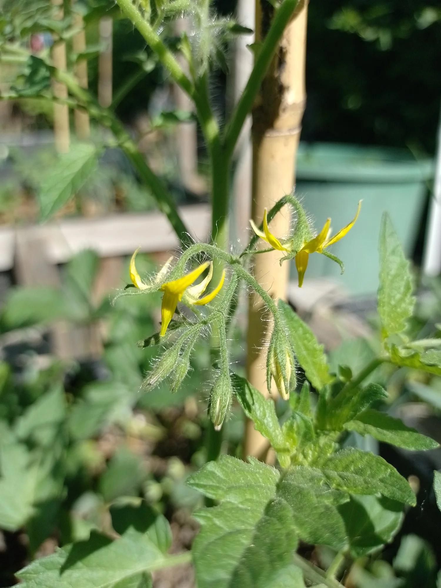 Kann ich bestätigen bei dem Wetter. Ich dachte schon, die Ollas würde ihren Dienst nicht ordentlich tun, aber 1. Sind sid Abends von alleine wieder aufgestanden und 2. Hat es ahch nicht geholfen, direkt bei den Wurzeln zusätzlich zu giessen. Ich denke, nach dem Einwachsen und der nächsten, etwas kühleren Woche sollte sich das hier gelegt haben. Meine beiden Wildtomaten auf der Terrasse sehen das allerdings nicht so eng, da hing nie was.🤔