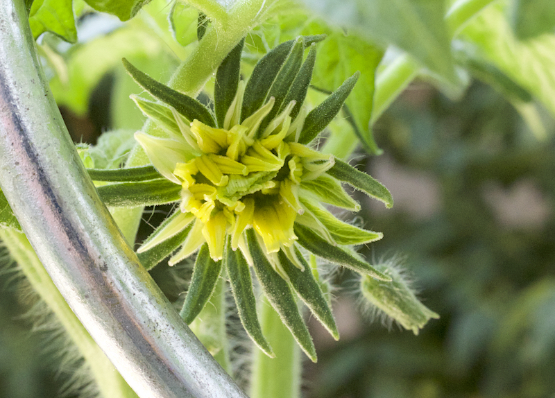 Bei der Gelegenheit beschloss ich, dass ich dem Rotkäppchen doch lieber einen Topf spendiere, statt sie zurück in den Kasten zu setzen. Ich hatte vorab Größenangaben von 50 cm sowie 80 - 100 cm als Wuchshöhe gefunden, und an sich wäre das auch alles ok, aber niemand hatte verraten, dass die Pflanze Unmengen an Trieben bekommt. Da ich mich auch an das "muss nicht ausgegeizt werden" hielt, wurde sie ein ziemlich dicker Brummer, der für den Balkonkasten nun doch ein wenig überdimensioniert ist.