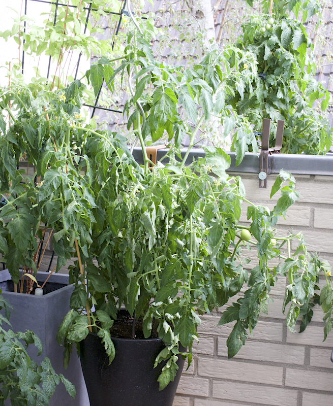 Ich habe keine Ahnung, wie sie das geschafft haben, aber: Es war kein einziger Zweig abgebrochen! Einzig ein paar Tomätchen waren abgefallen, und selbst das hielt sich in Grenzen. Ich war so was von erleichtert! Durch die vielen Wurzeln hatten sie sich auch gut gemeinsam festgehalten, insbesondere auch die Erde, so dass tatsächlich auch davon kaum etwas weggefegt werden musst. Und auch bei der Nachbarin blieb zum Glück alles heil. Ebenso der Kasten an sich. Wirklich ein Wunder, wie ich finde.