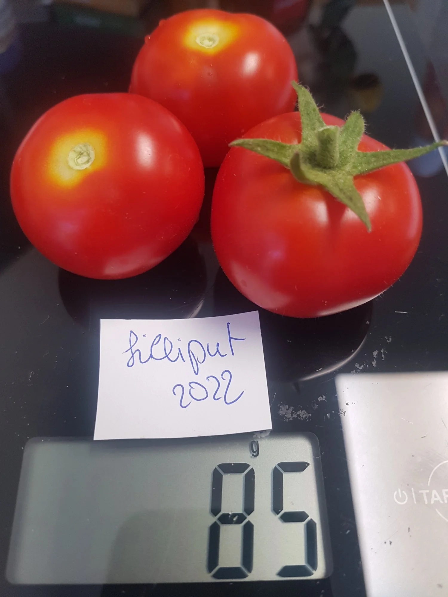 Und ich habe jetzt hier heute doch knapp 2,5 Kilo Tomaten geerntet