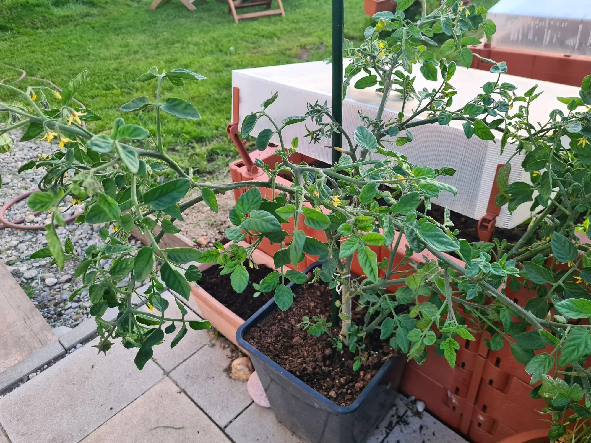 Ach, das kann auch sortenspezifisch sein. Ich habe welche, die kann ich an der Schnur aufrollen und trotzdem tragen sie gut.Hätte ich jetzt auch so gesagt. Einerseits sehen sie bei weitem nicht so schlimm aus - einzig die Triebe kommen mir doch relativ dünn vor, da ist es kein Wunder, wenn die nicht mehr tragen, weil sie einfach nicht mehr schaffen..