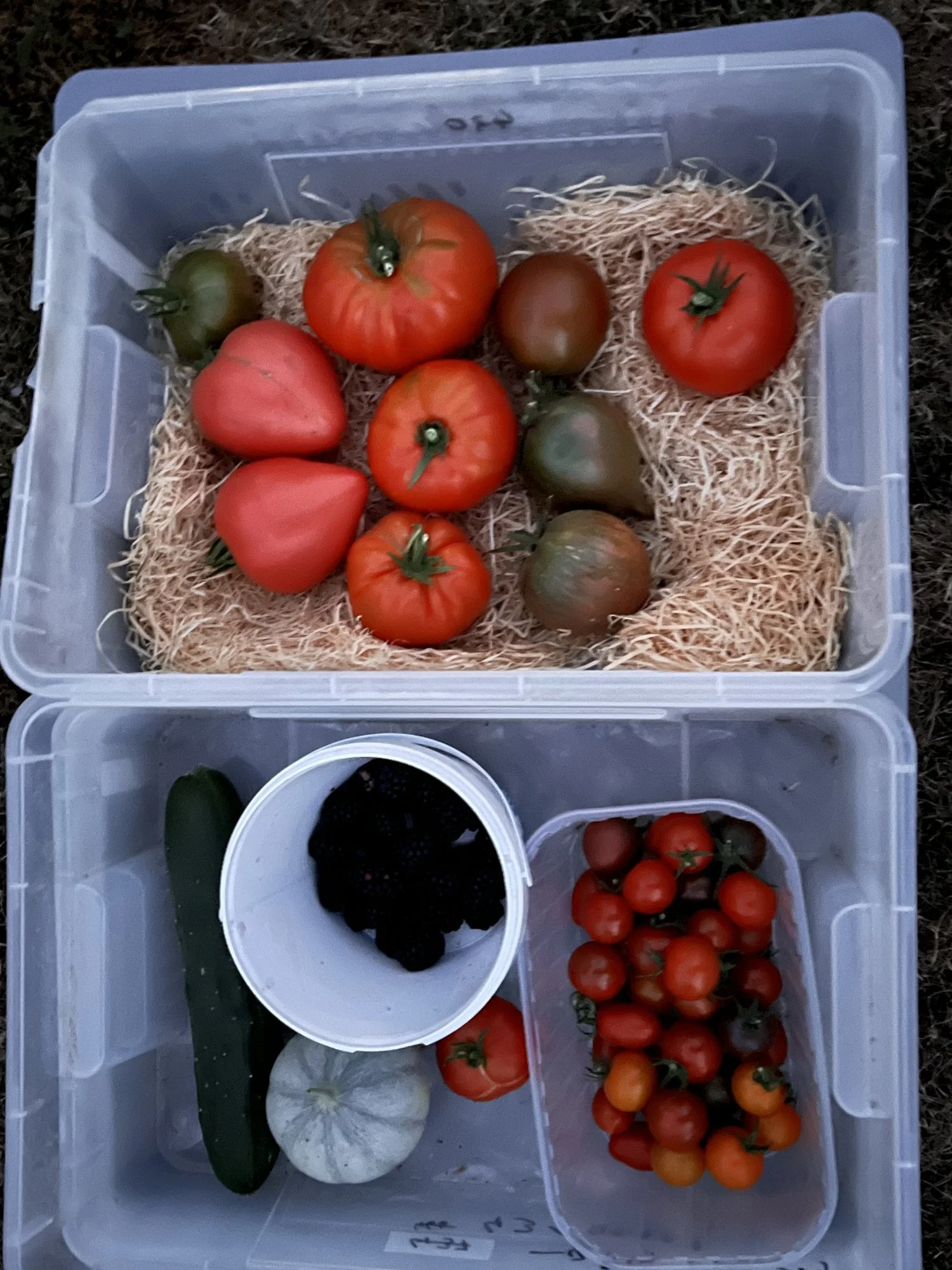 Meine erste große Tomatenernte ausser ein paar Naschfrüchte zuvor. Habe am Wochenende in Tomatensalat geschwelgt und Sauce eingekocht.