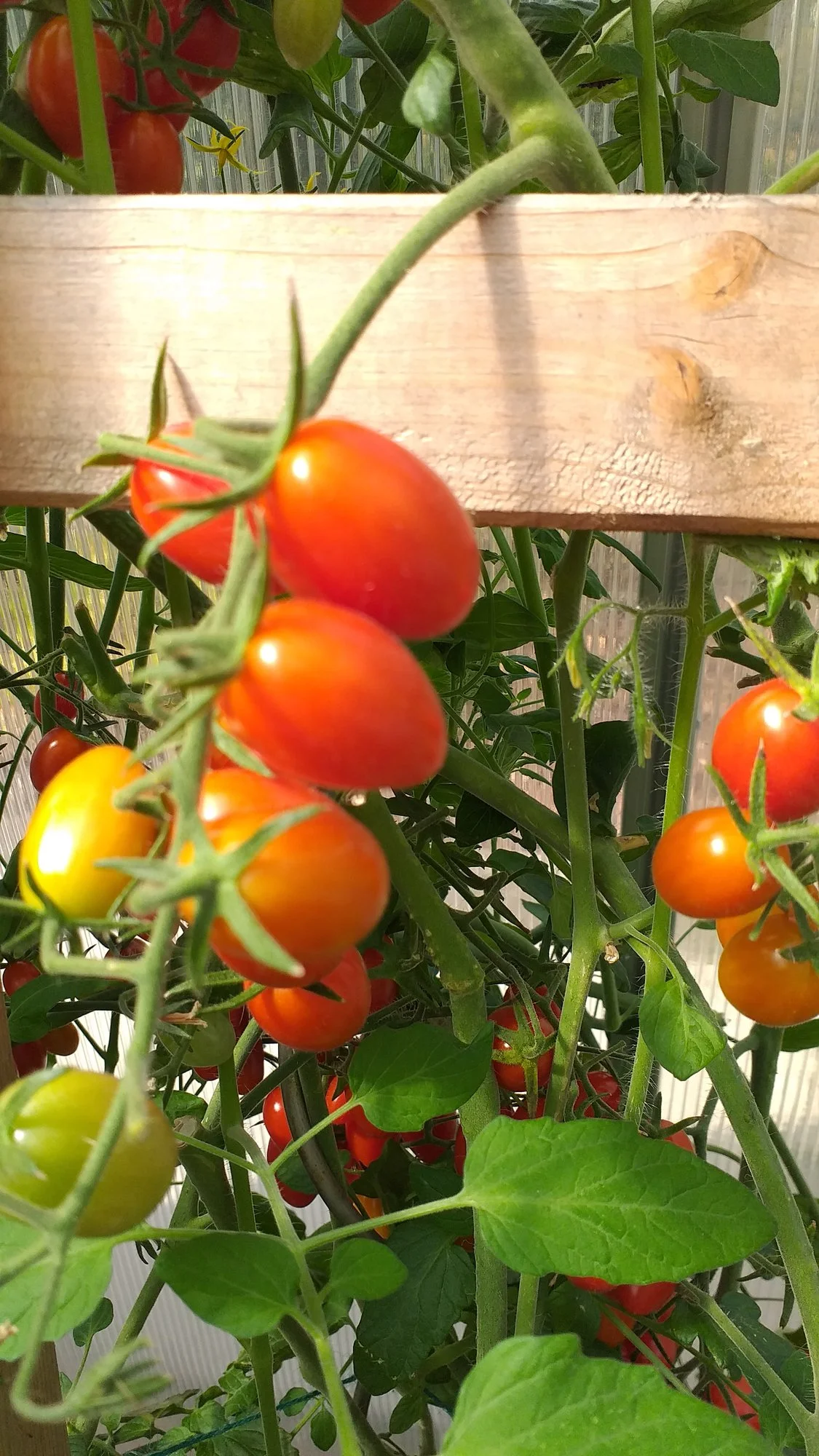 Im Eimerchen sind die verhüteten Saatguttomaten in der Schüssel die heutige normale Ernte. Um die Johannisbeertomate und die unbekannte Cherry abzuernten war ich allerdings zu faul :D erstere ist einfach winzig und für letztere bräuchte ich jetzt eine Leiter. Abgesehen davon, dass die meistens eh nicht den Weg ins Haus finden sondern vorher weggenascht werden.