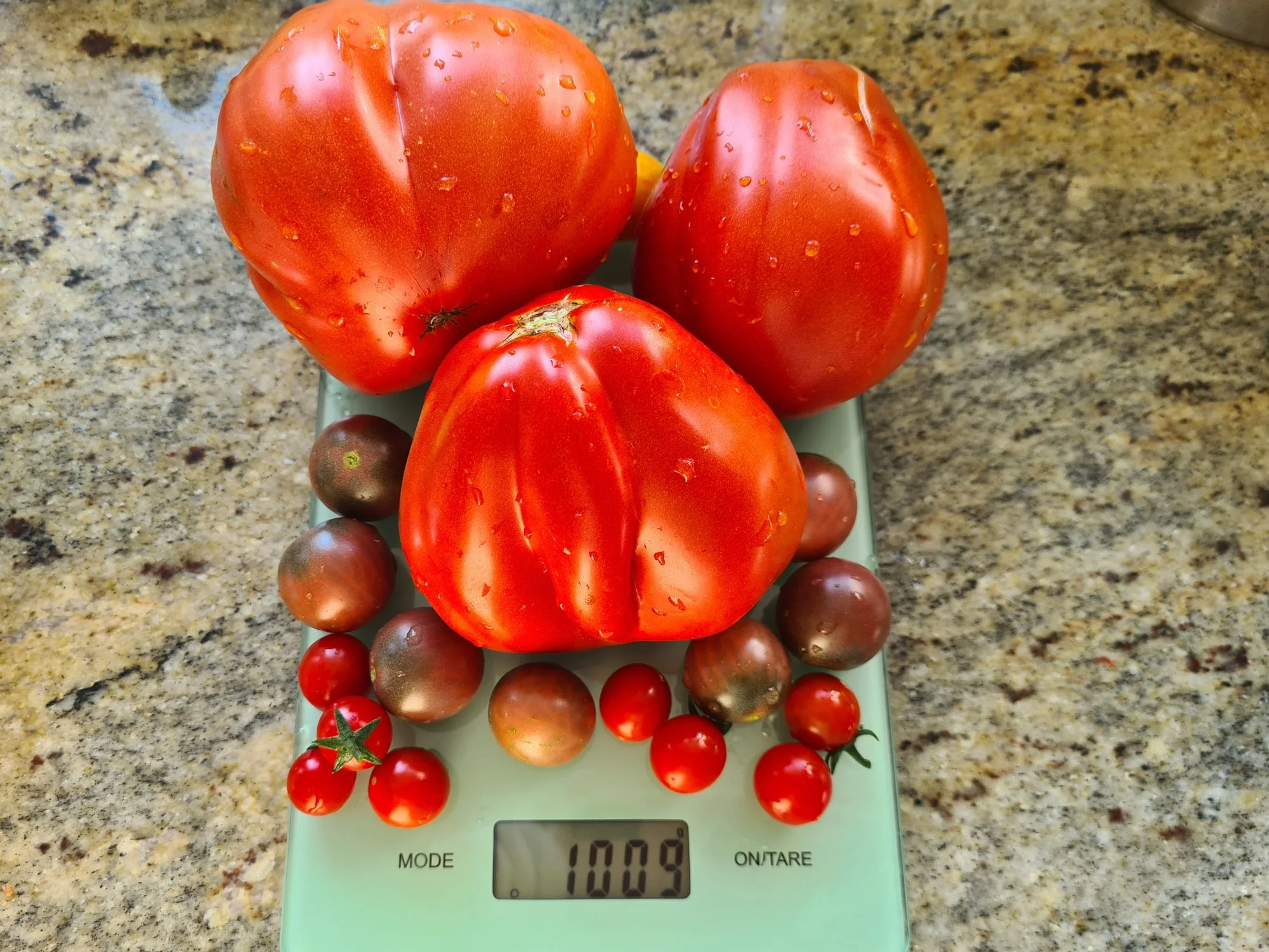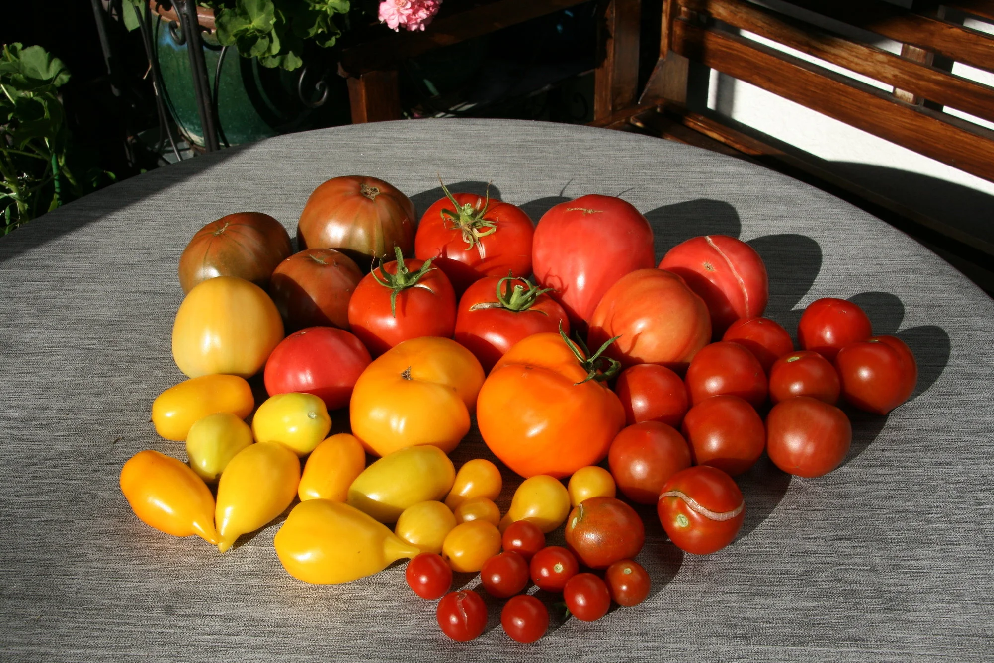 Sorten wie der Mongolische Zwerg, Chelnok, Red Pear, Vivagrande, 42 Days und noch ein paar andere waren dabei echte Massenträger. Unglaublich was da runter kam und immer noch runter kommt. Aber auch ein paar der Cocktails - Kilos über Kilos... zum Glück tragen manche Sorten vergleichsweise wenig, wir wissen langsam nicht mehr wohin mit den Tomaten. :grinsend:
