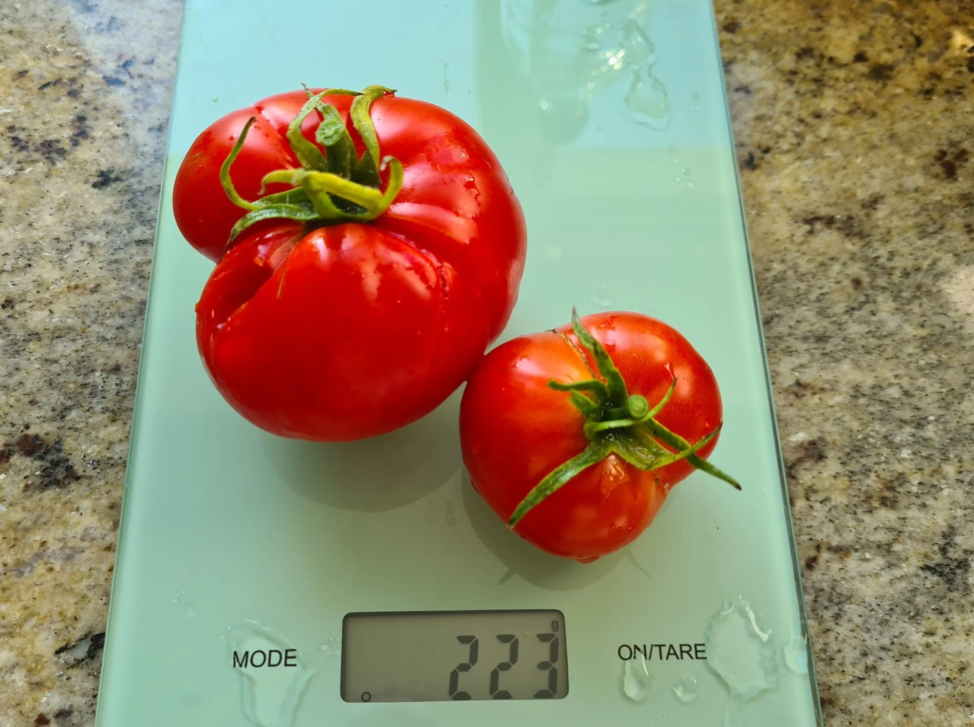 Bei manchen fällt dieses Jahr nur auf, dass, obwohl sie geschmacklich super sind, das Verhältnis von Fruchtgröße und Schale nicht so passt. Aber das betrifft in erster Linie die Cocktails, nicht die Fleischtomaten und Flaschentomaten und liegt mE wirklich am Wetter.