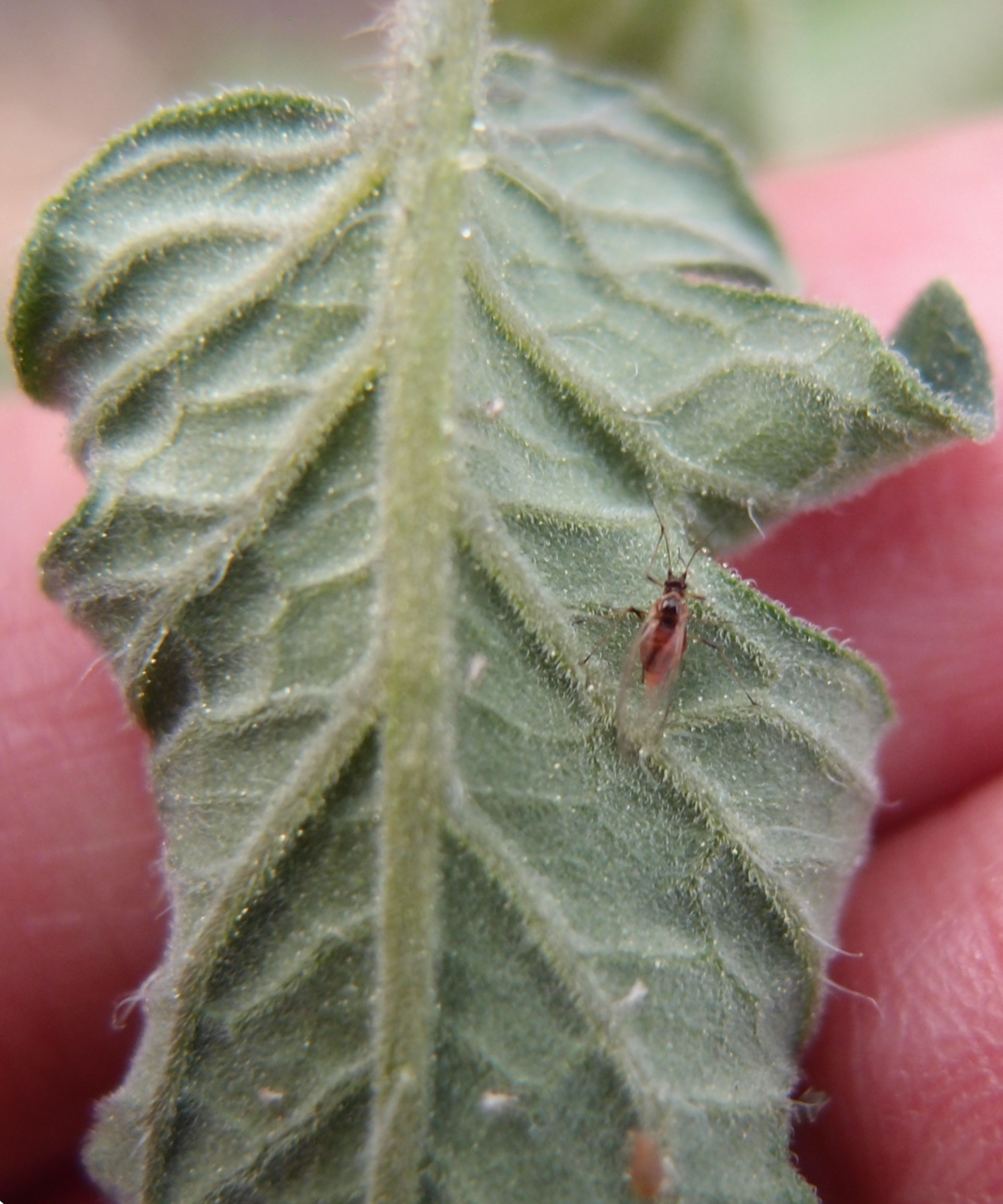 Direkt daneben schauen alle Tomaten weiterhin gesund und frisch aus und der Billig-Feuchtigkeitsfühler zeigt 6-7 an, also nicht übermäßig nass aber auch nicht so trocken, dass es das Erscheinungsbild erklären würde.