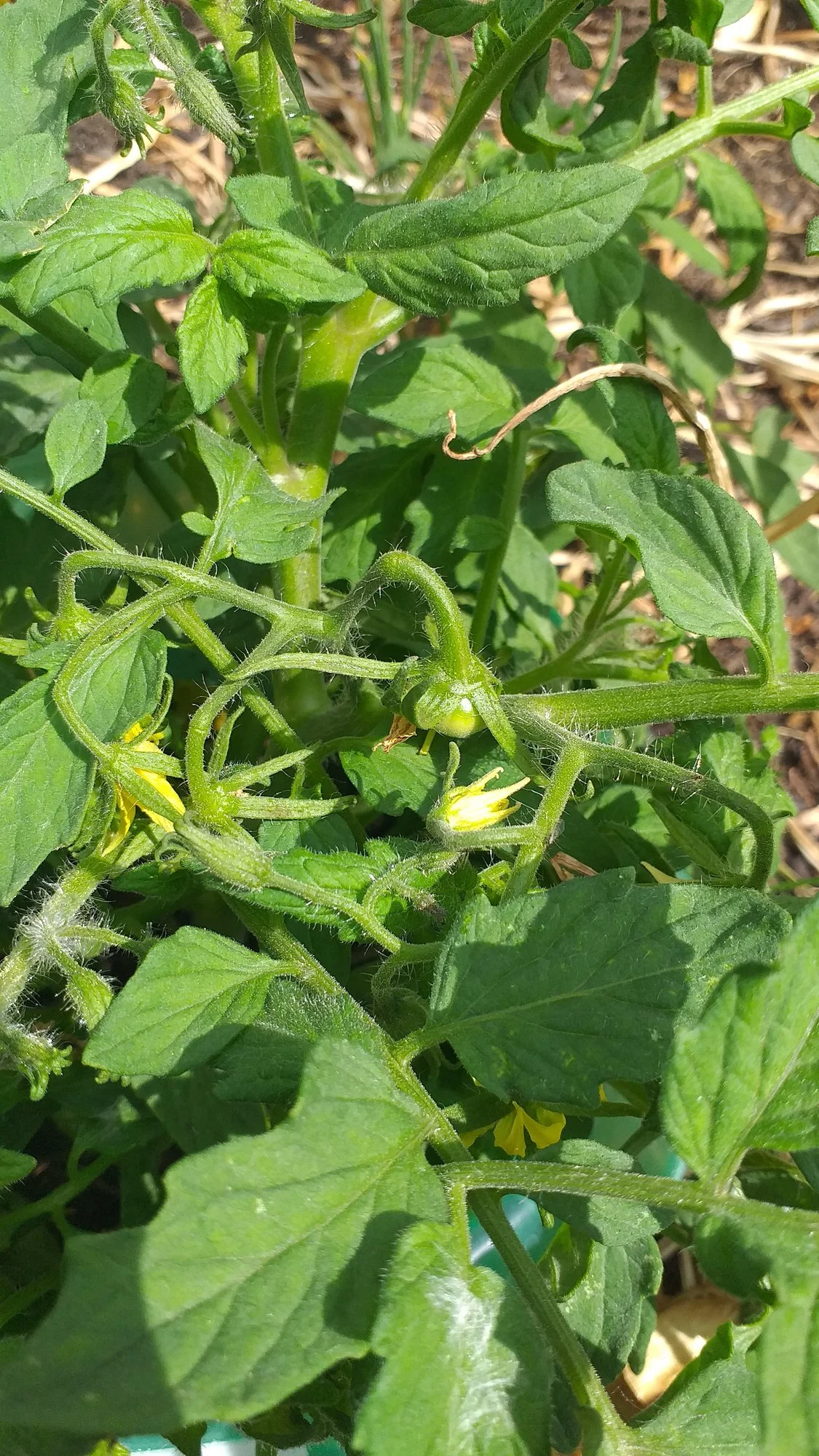 Wirklich guten Fruchtansatz haben hier bisher vielleicht 1/5 der Sorten. Vereinzelten Fruchtansatz an der ersten Rispe nochmal etwas 2/3 und die anderen bisher nur Blüten. Dafür viel Blattmasse.