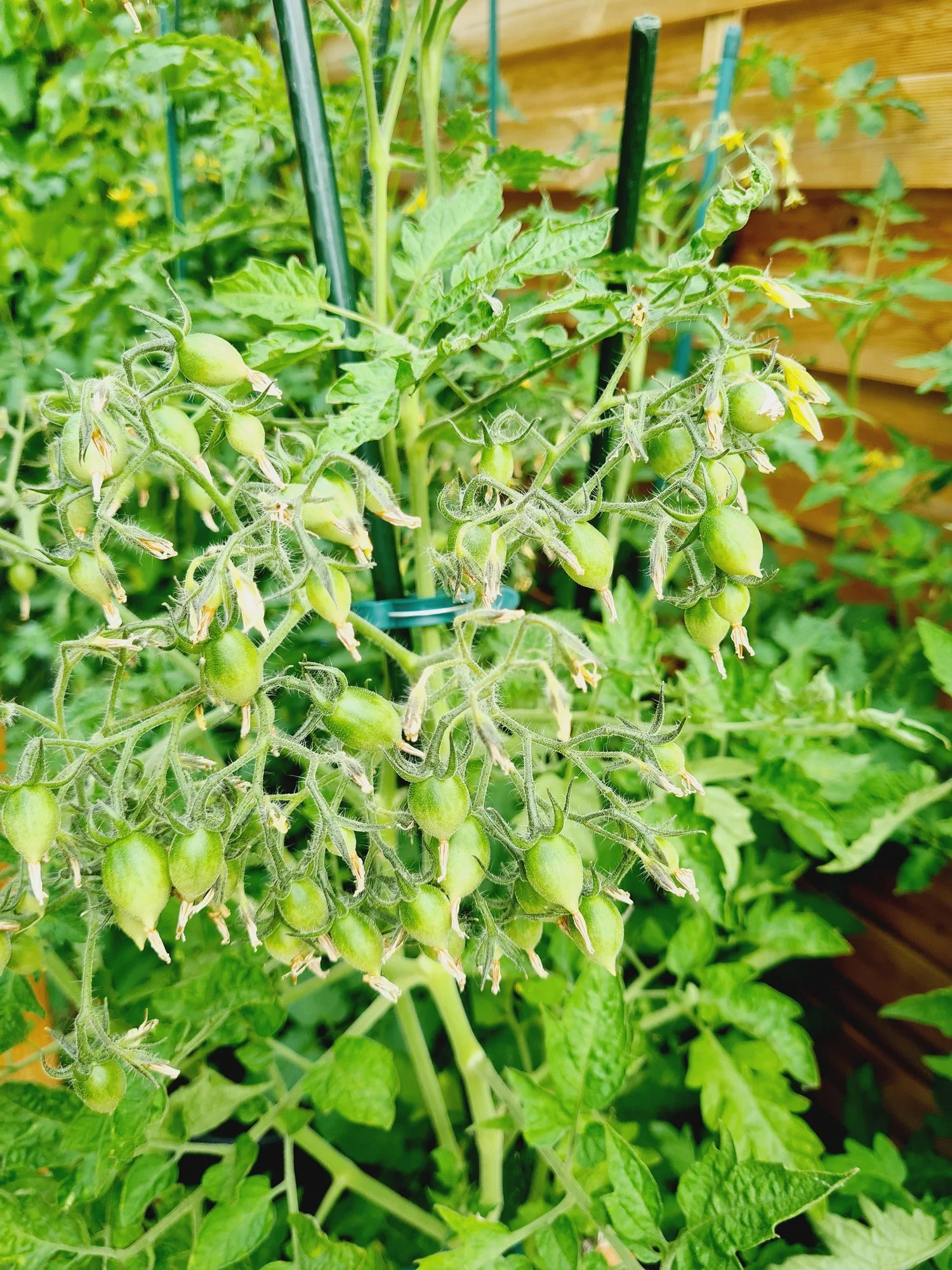 Meine Tomaten haben jetzt ab 50cm Höhe die ersten wenigen Tomaten...dann weite Abstände und je höher umso dichter...