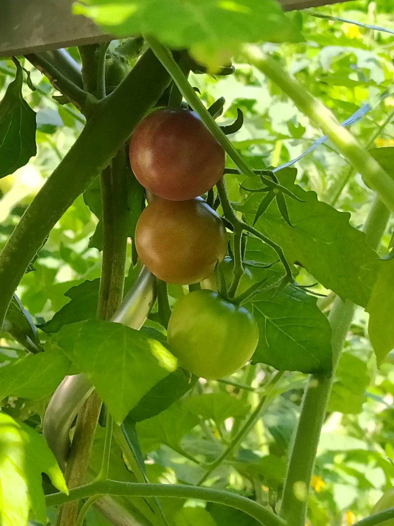 Jetzt, wo Luft rankommt, bilden sich neue Blüten, viele Tomaten kamen zum Vorschein.