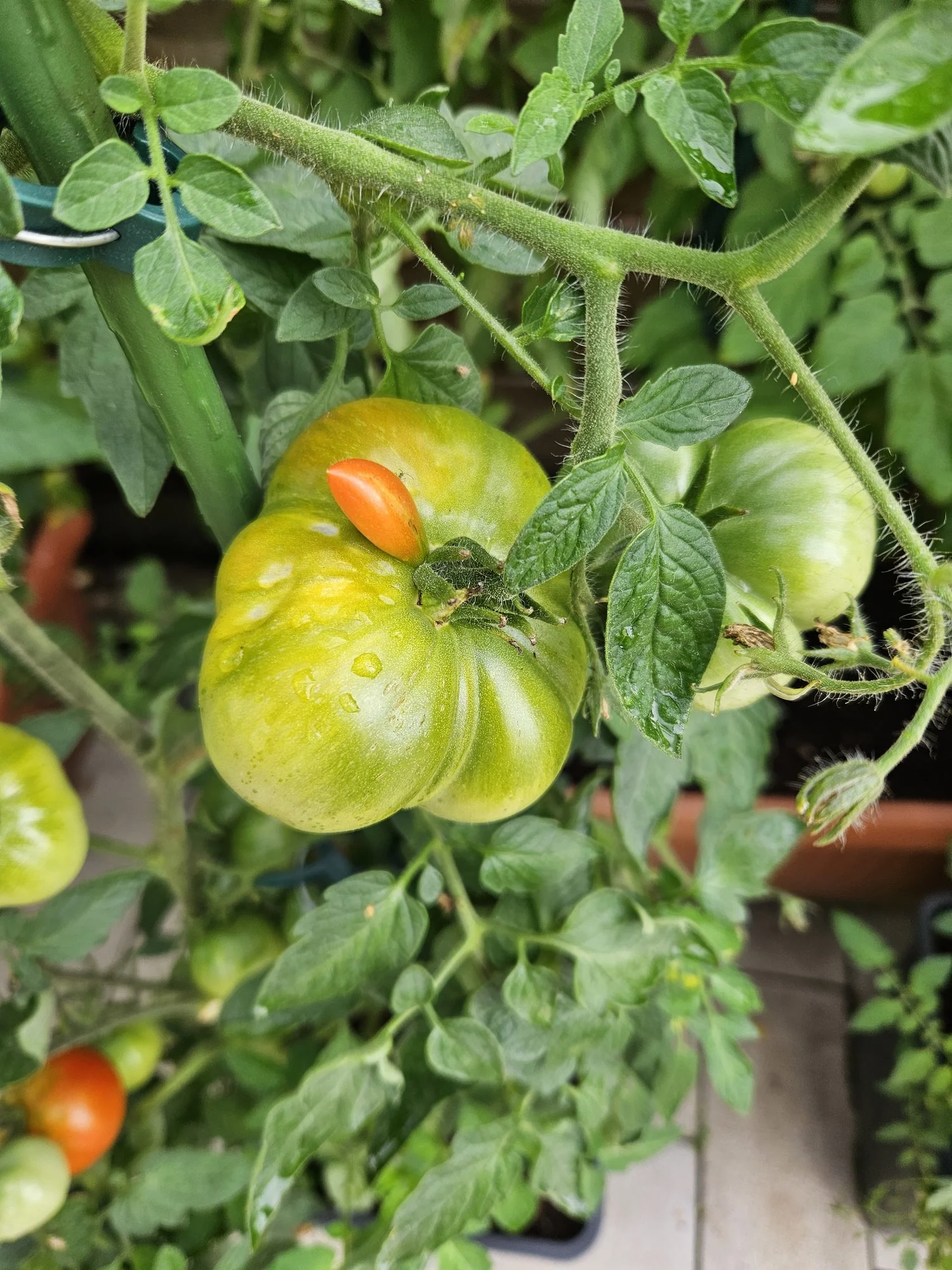 Bin daher schwer am Überlegen ob ich sie trotz der BEF nochmal anbaue. Immerhin tritt bei dieser Pflanze - anders als bei der Piennolo - die BEF im Kübel auf (wenn auch in 75 Litern, aber sie musste dennoch schon einige Male stark Durst leiden), und da hier ja fast jeder über BEF klagt, scheint das Jahr ohnehin schwierig zu sein.