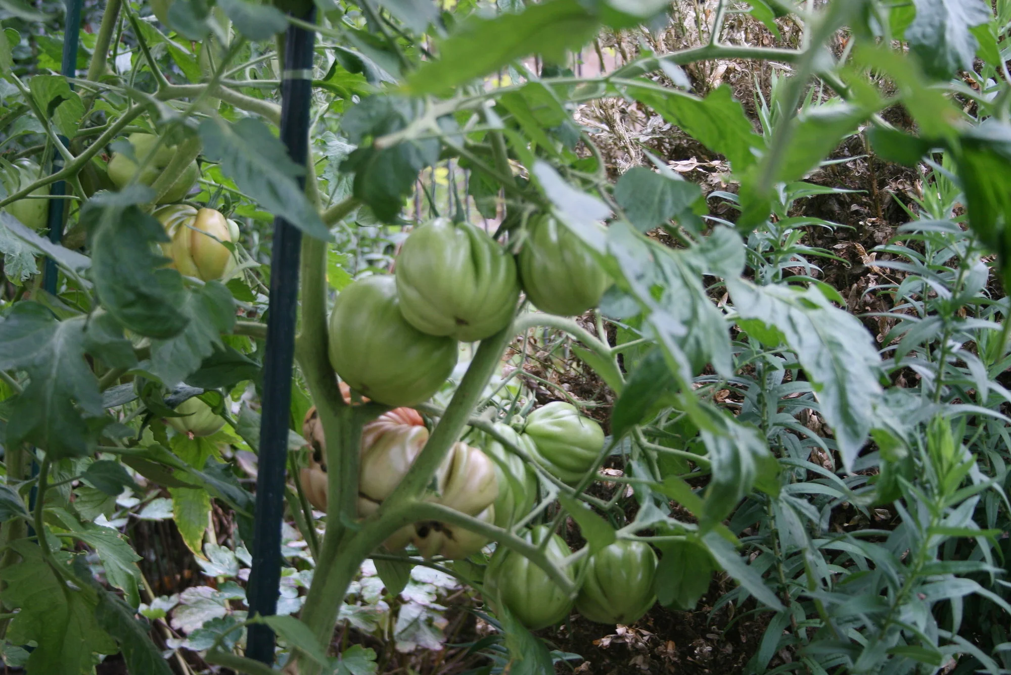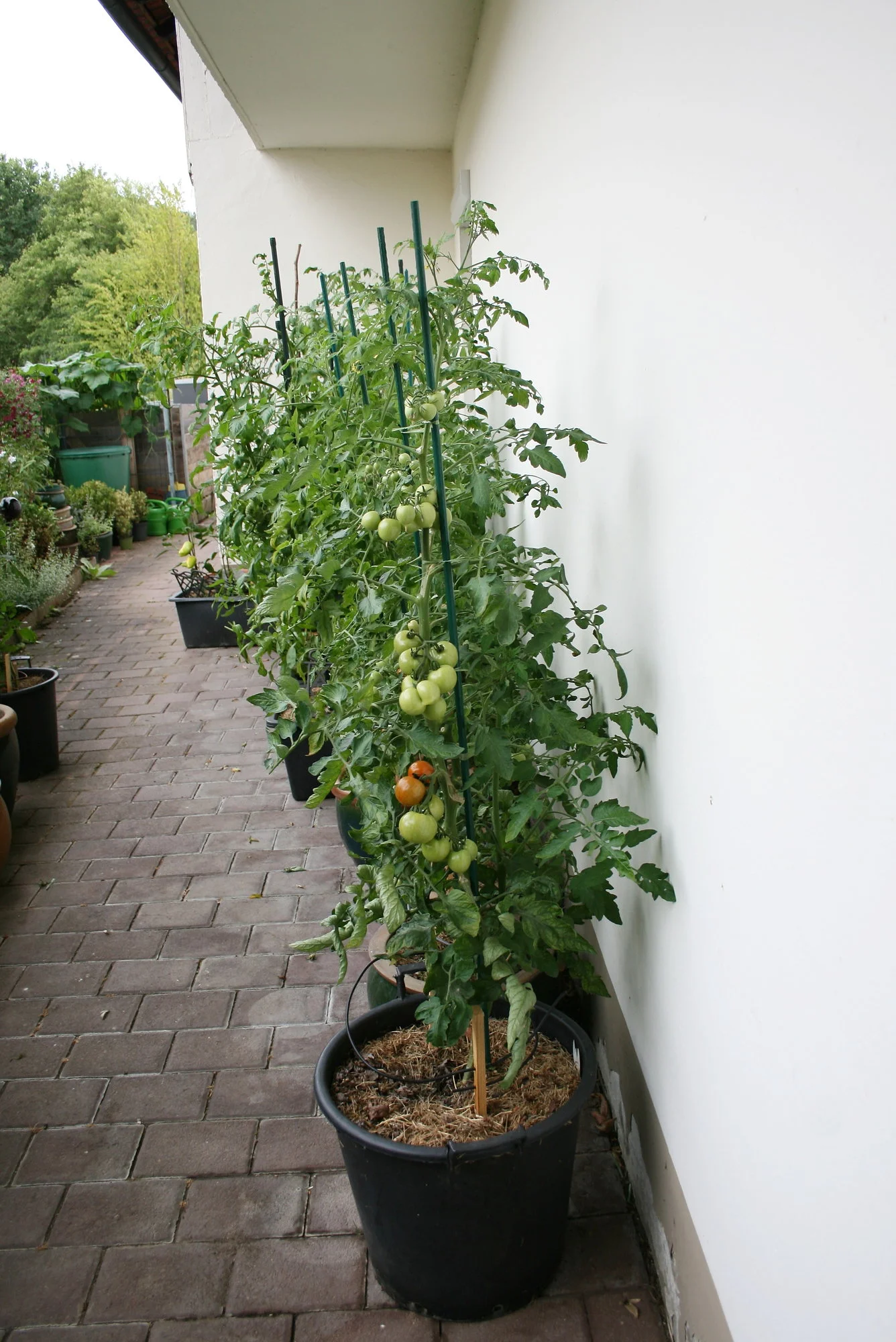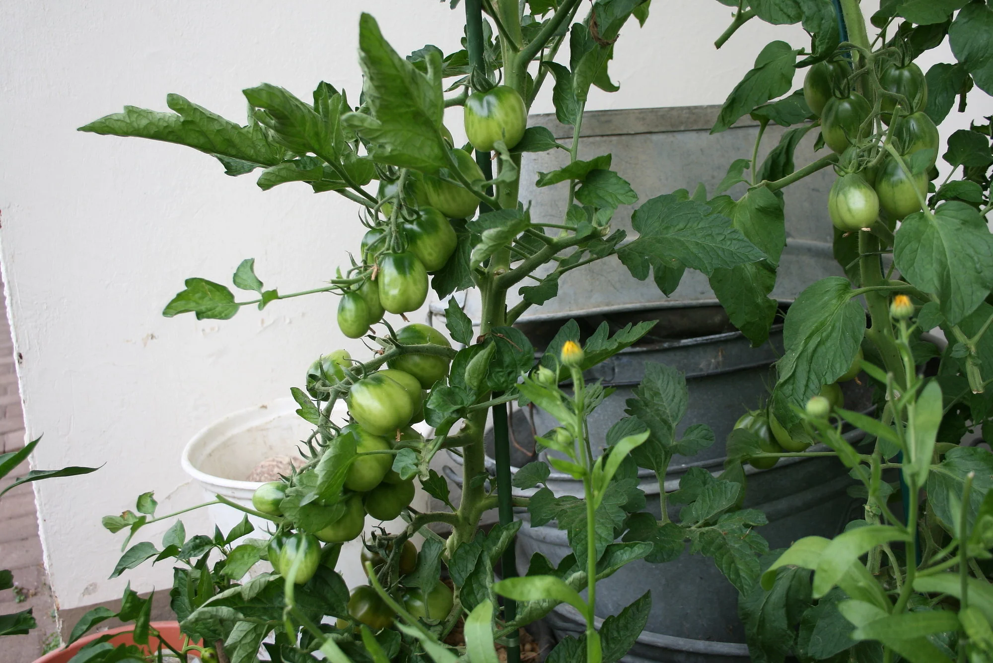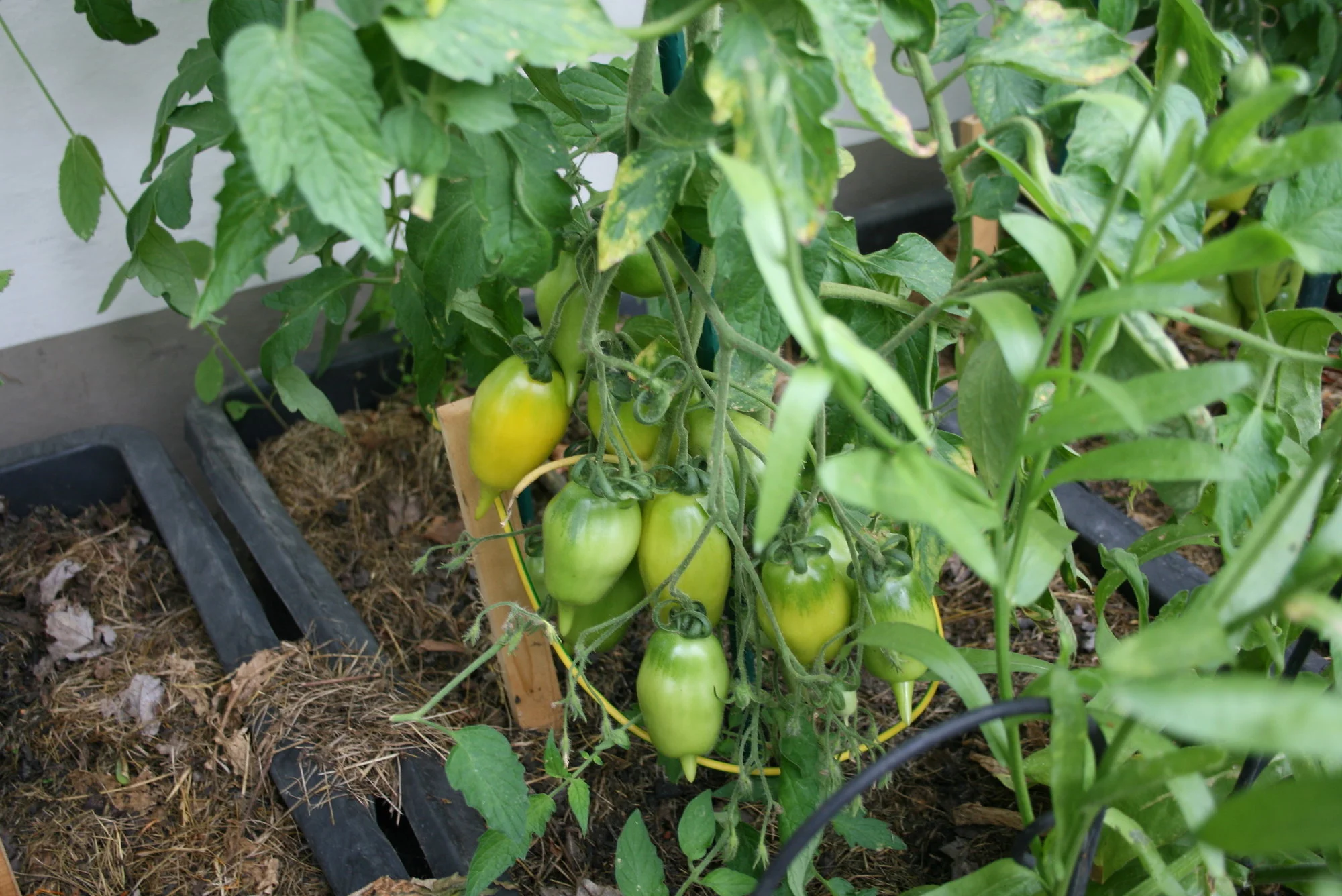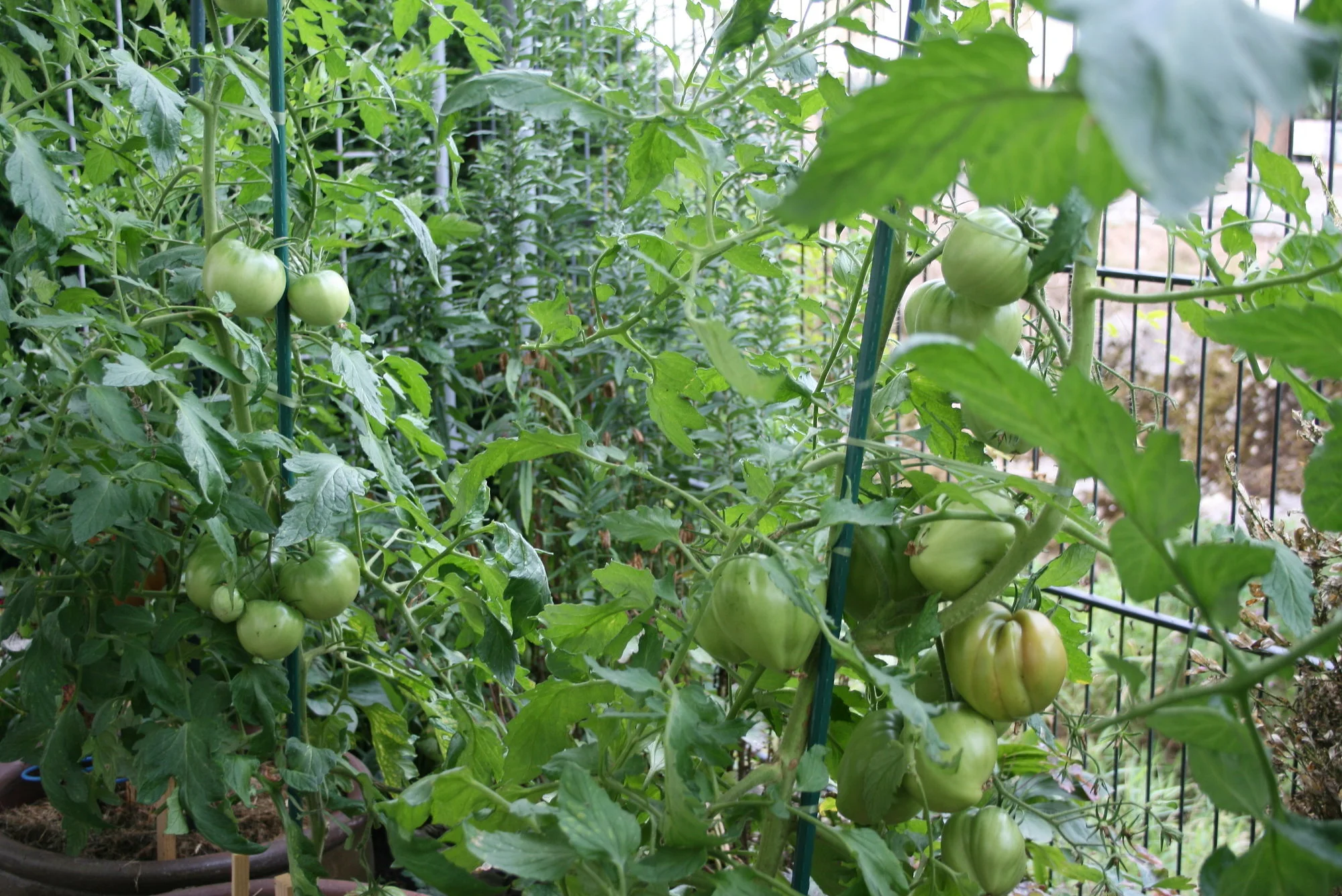 Meine Tomaten haben viele Früchte angesetzt und sind total gesund. Habe auch schon etliche abnehmen können, aber jetzt gehts erst richtig los. Muß morgen mal Fotos machen von den geernteten. Habe vorher vergessen, wie ich die Fotos gemacht habe. Die großen Fleischtomaten liebe ich ja sehr. Die haben so einen guten Geschmack. Ohne Dach geht bei uns gar nichts, bin so froh um meine überdachte Ostseite.