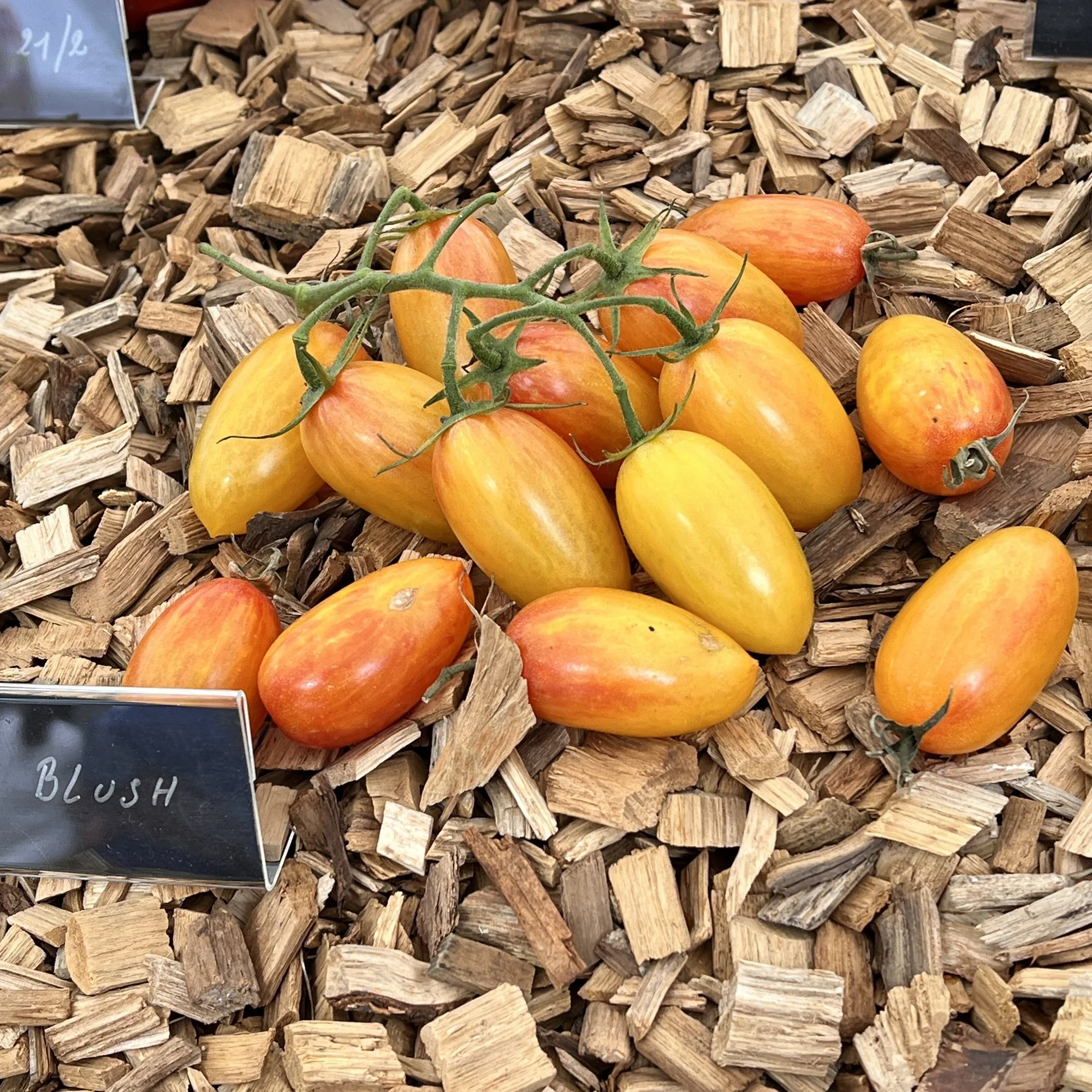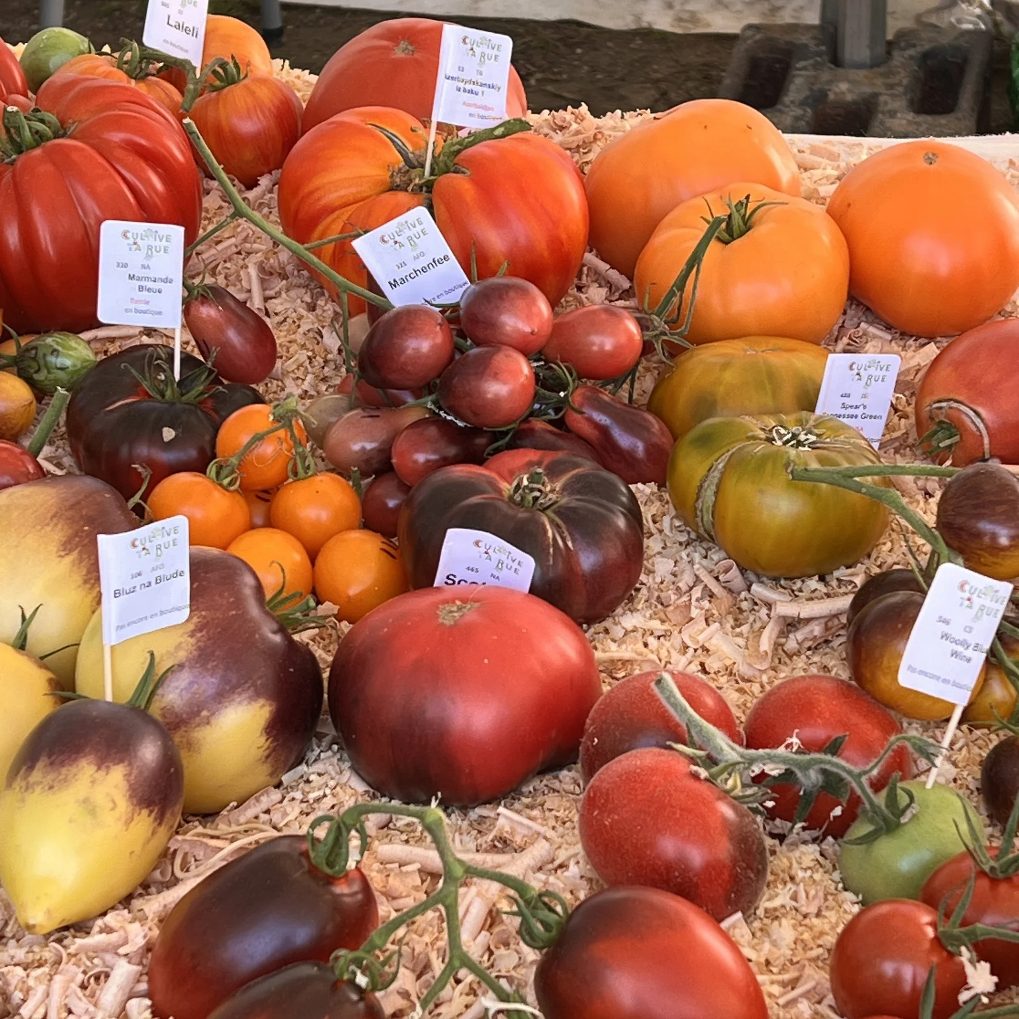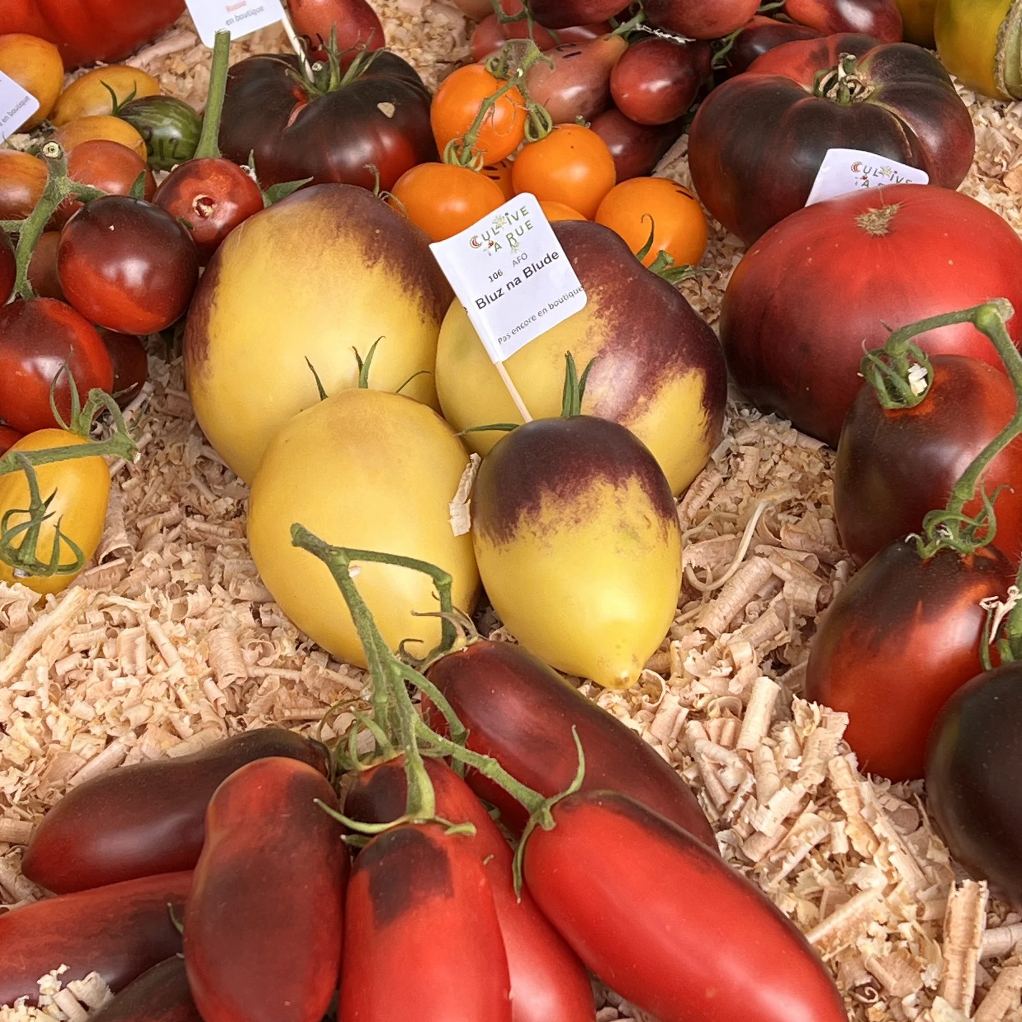 Dieses Jahr hatte ich eine ganze Bäckerkiste voll Tomaten mit. Fein sortiert nach Sorten.
