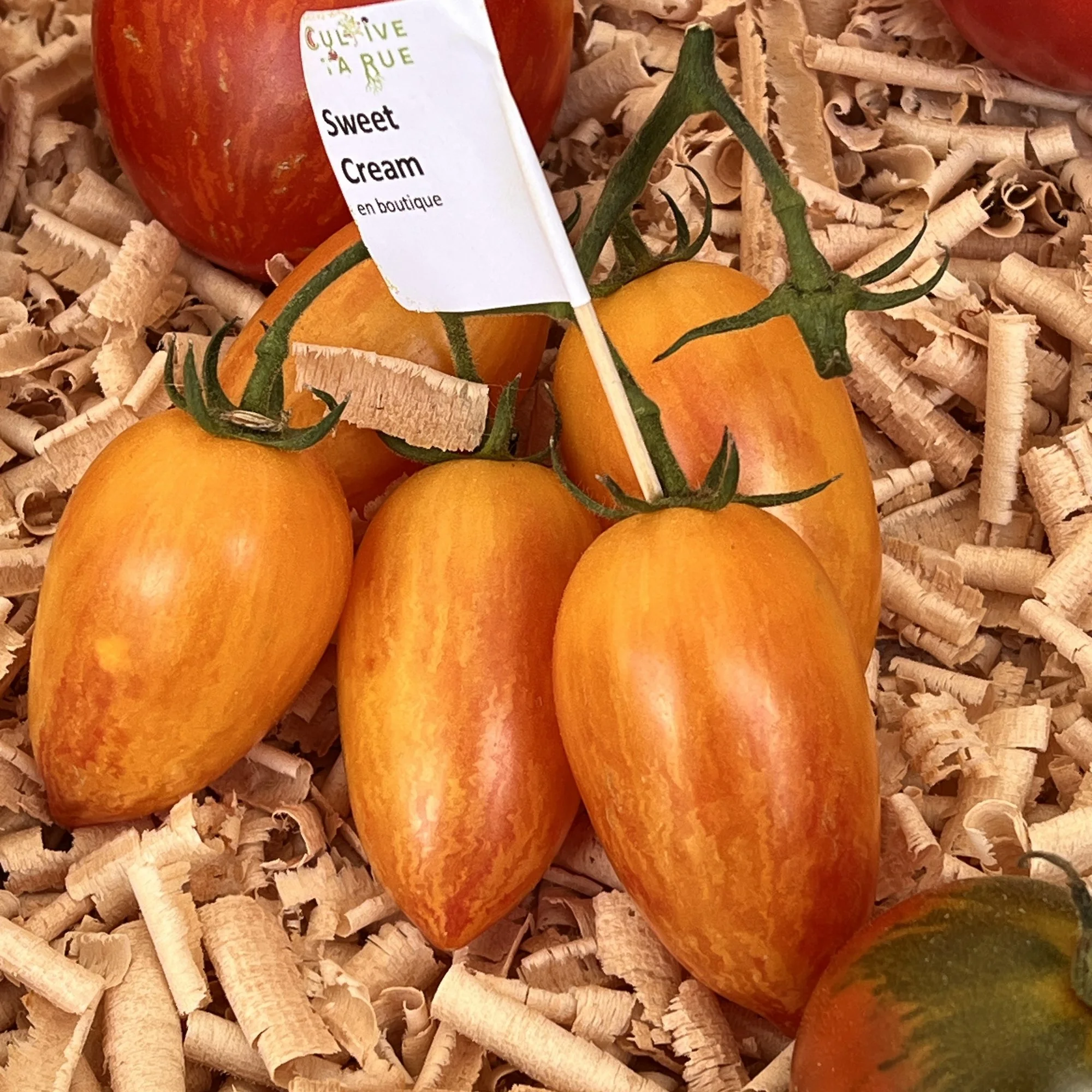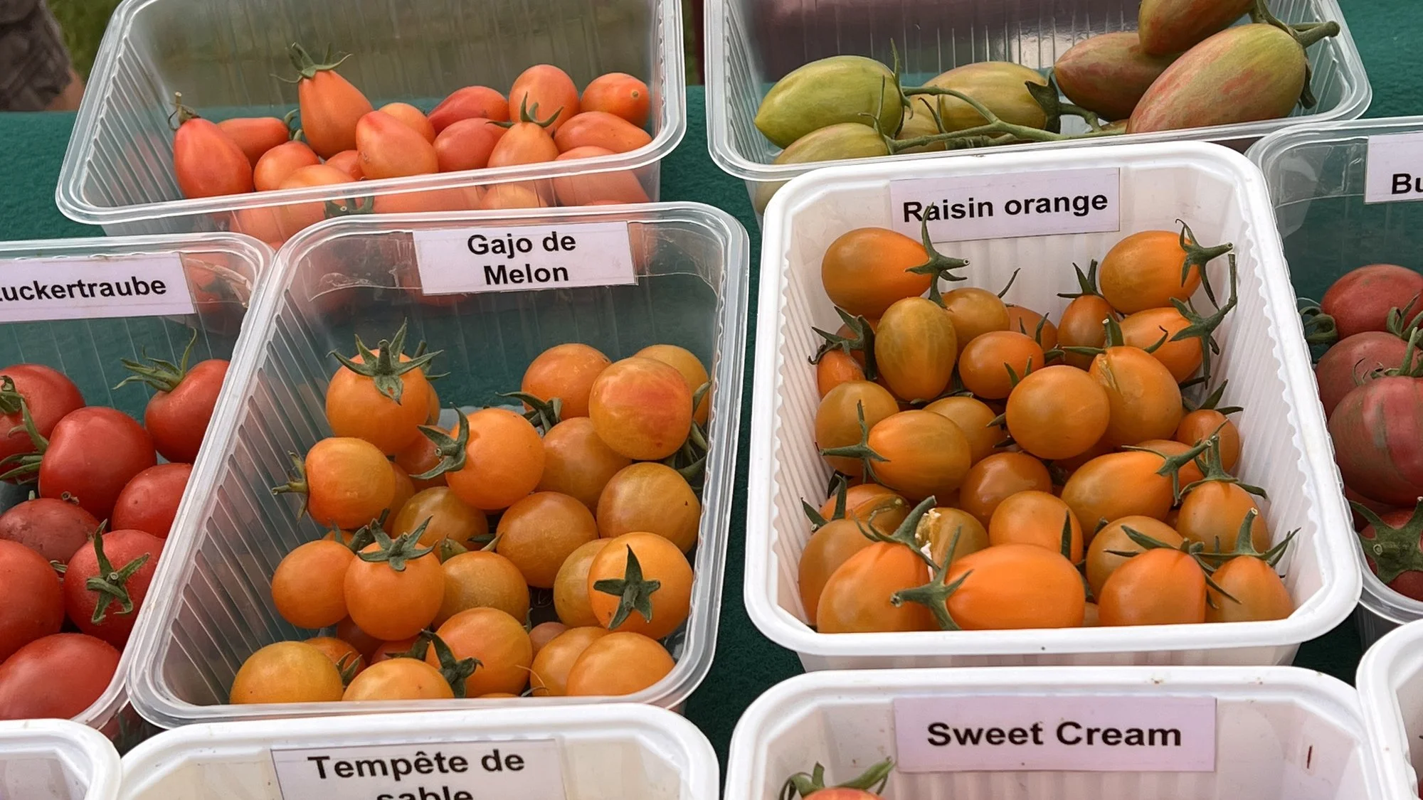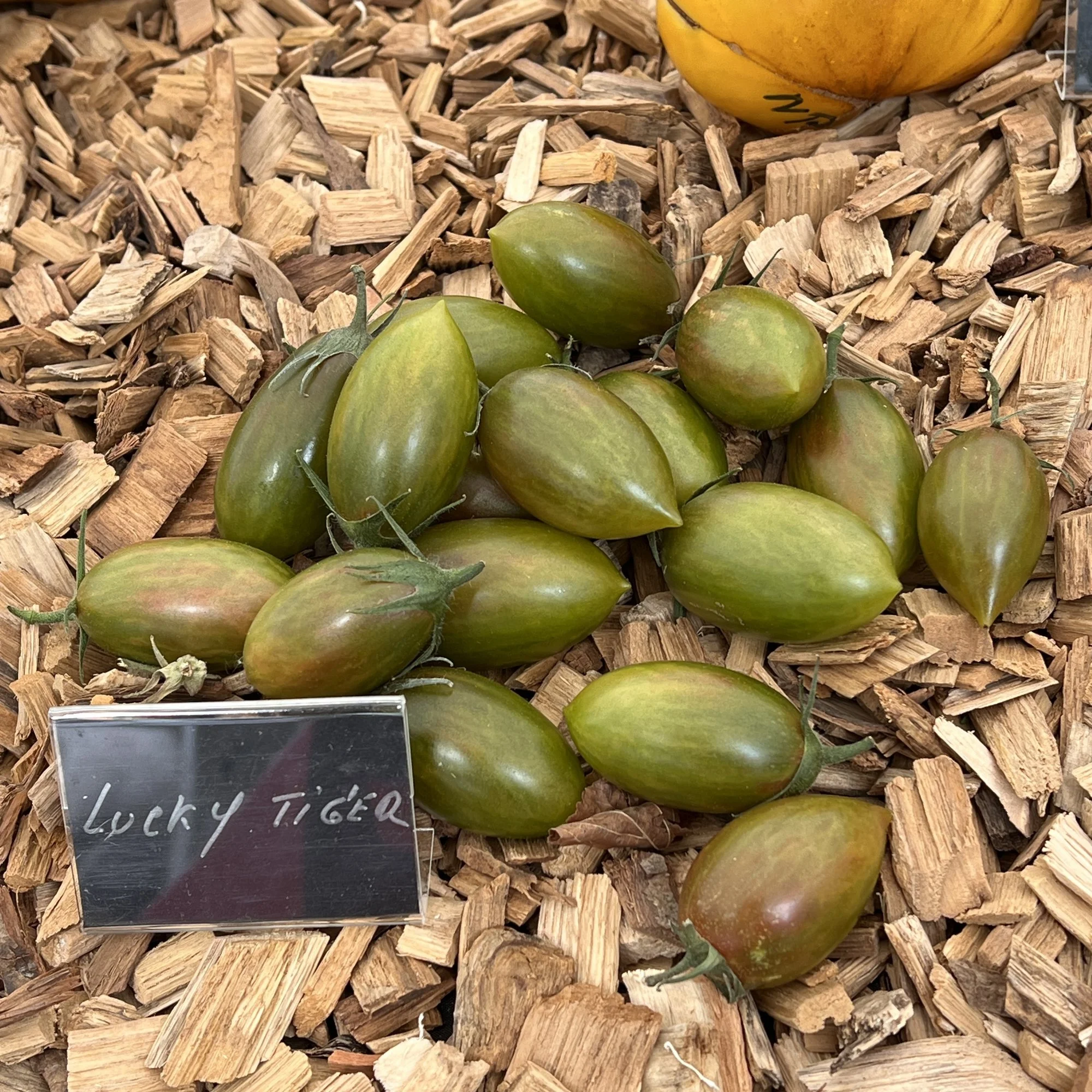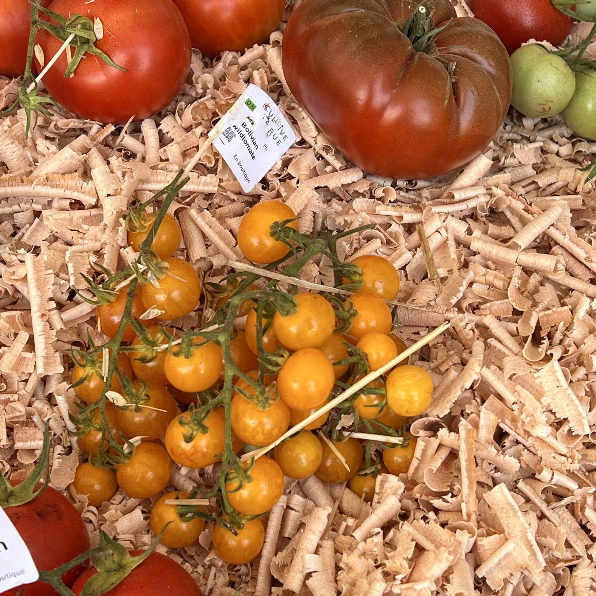 Dieses Jahr hatte ich eine ganze Bäckerkiste voll Tomaten mit. Fein sortiert nach Sorten.