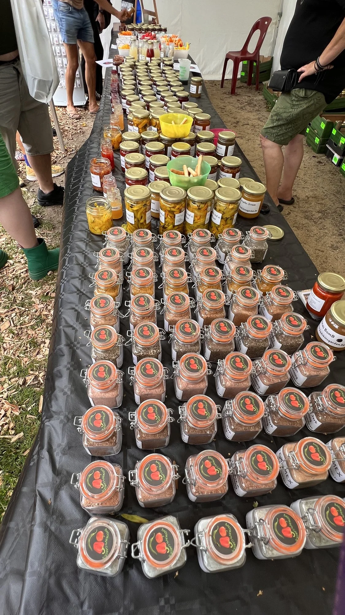 Habe ich trotzdem an vier Ständen. Alle waren sehr interessiert. Probierten, stellten Fragen, machten Fotos. Und alle behielten auch ein oder mehrere Früchte zur Samengewinnung.