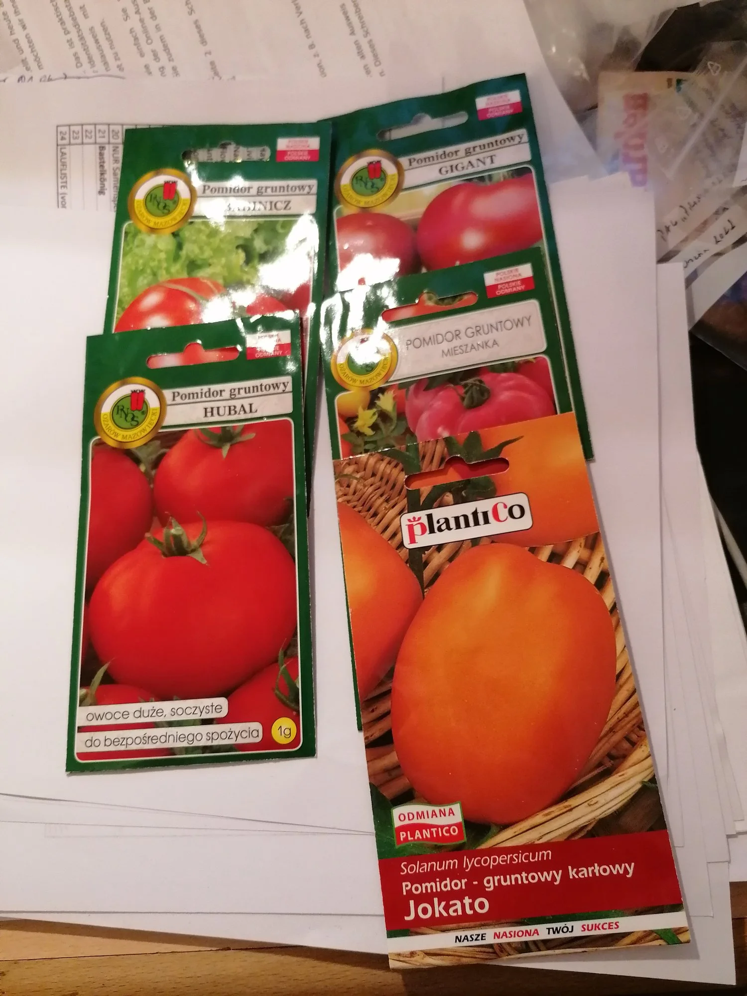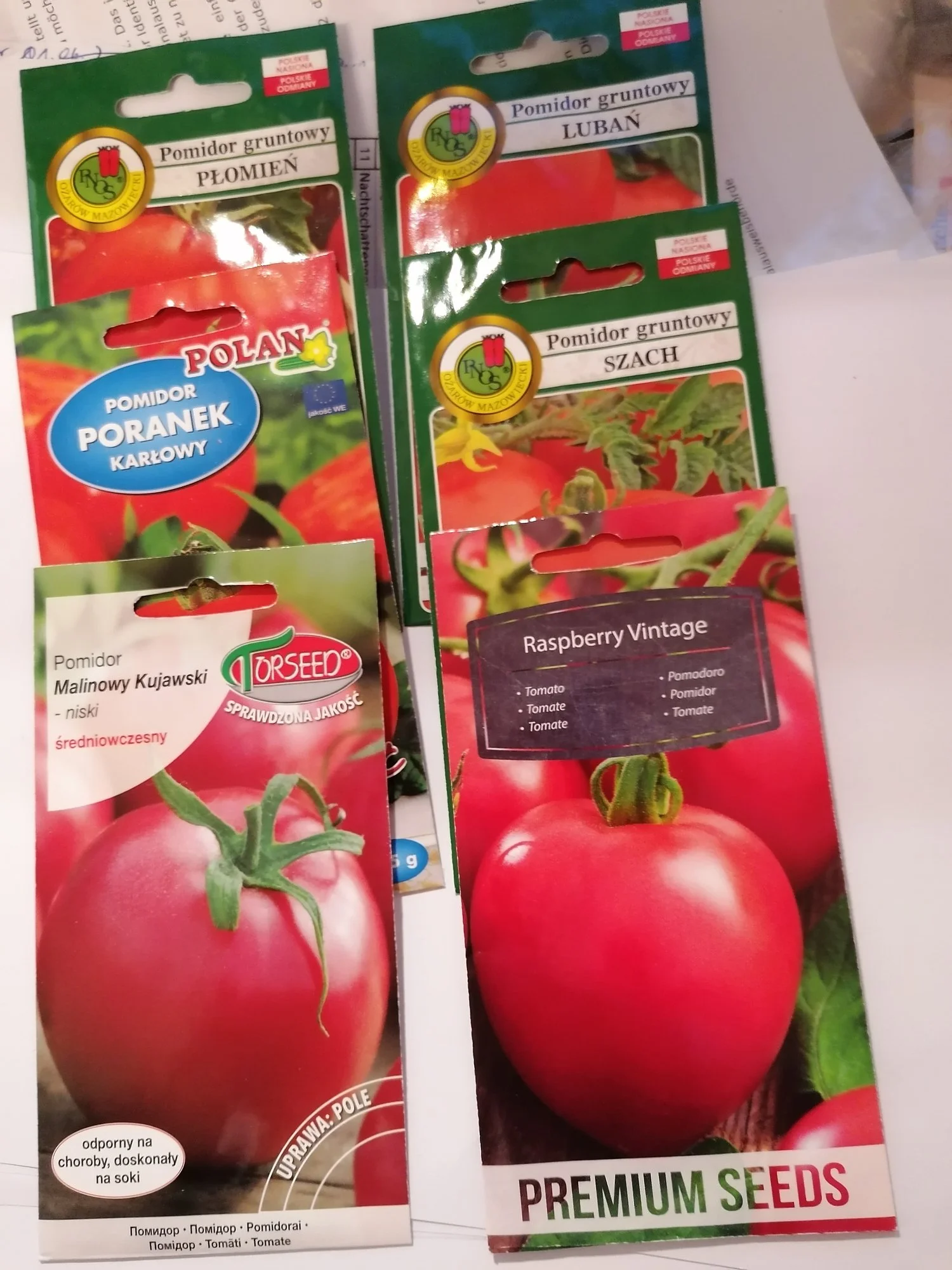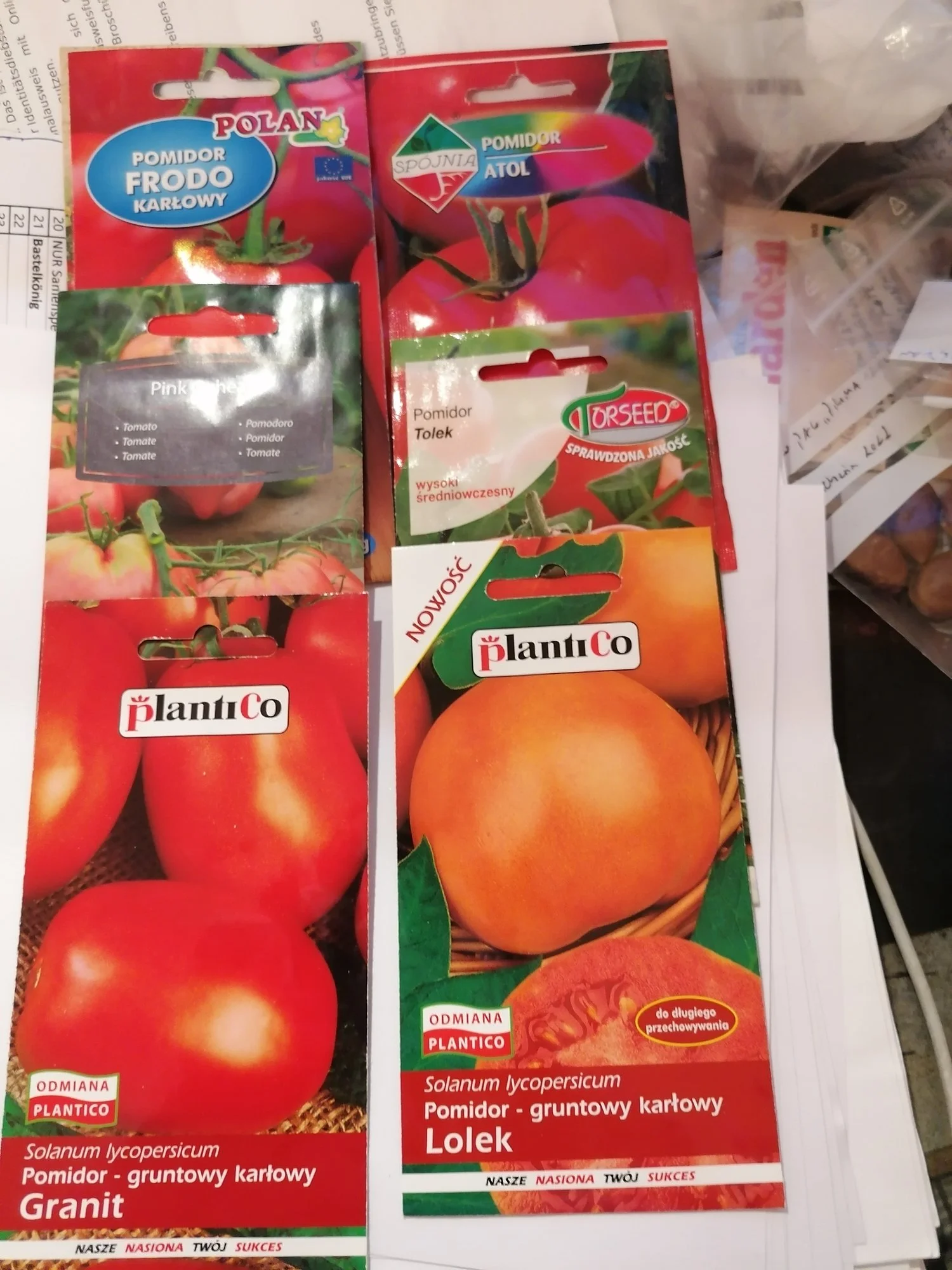 Dazu liegt hier der Packen mit Tomatensaatgut von um die 20 Sorten aus Polen.