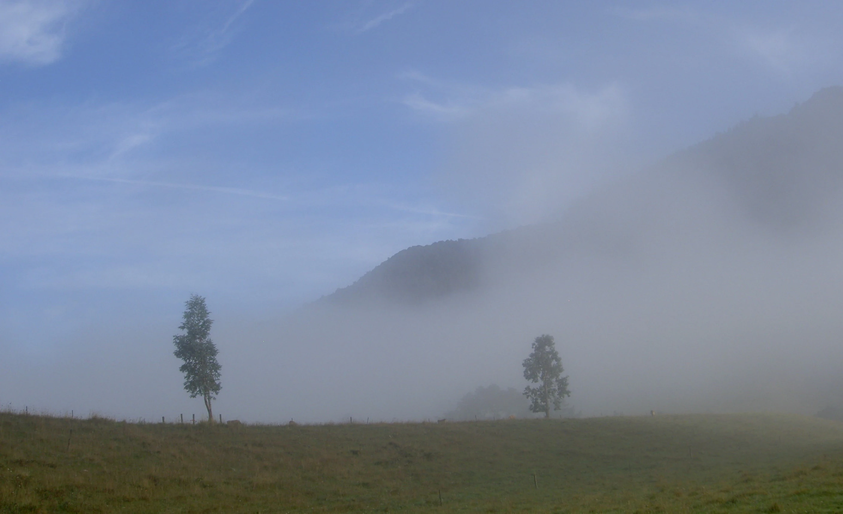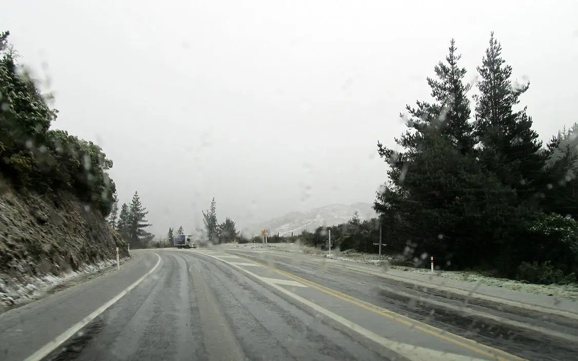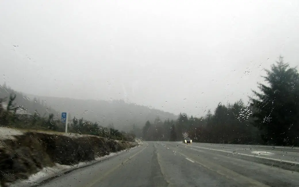 Hier mal was, das mir wie ein Tristesse-Bild vorkommt: trostloses ödes endloses glitschiges lichtarmes Schmuddelwetter! Ist übrigens kein Schwarzweißbild, und aus dem fahrenden Auto aufgenommen.