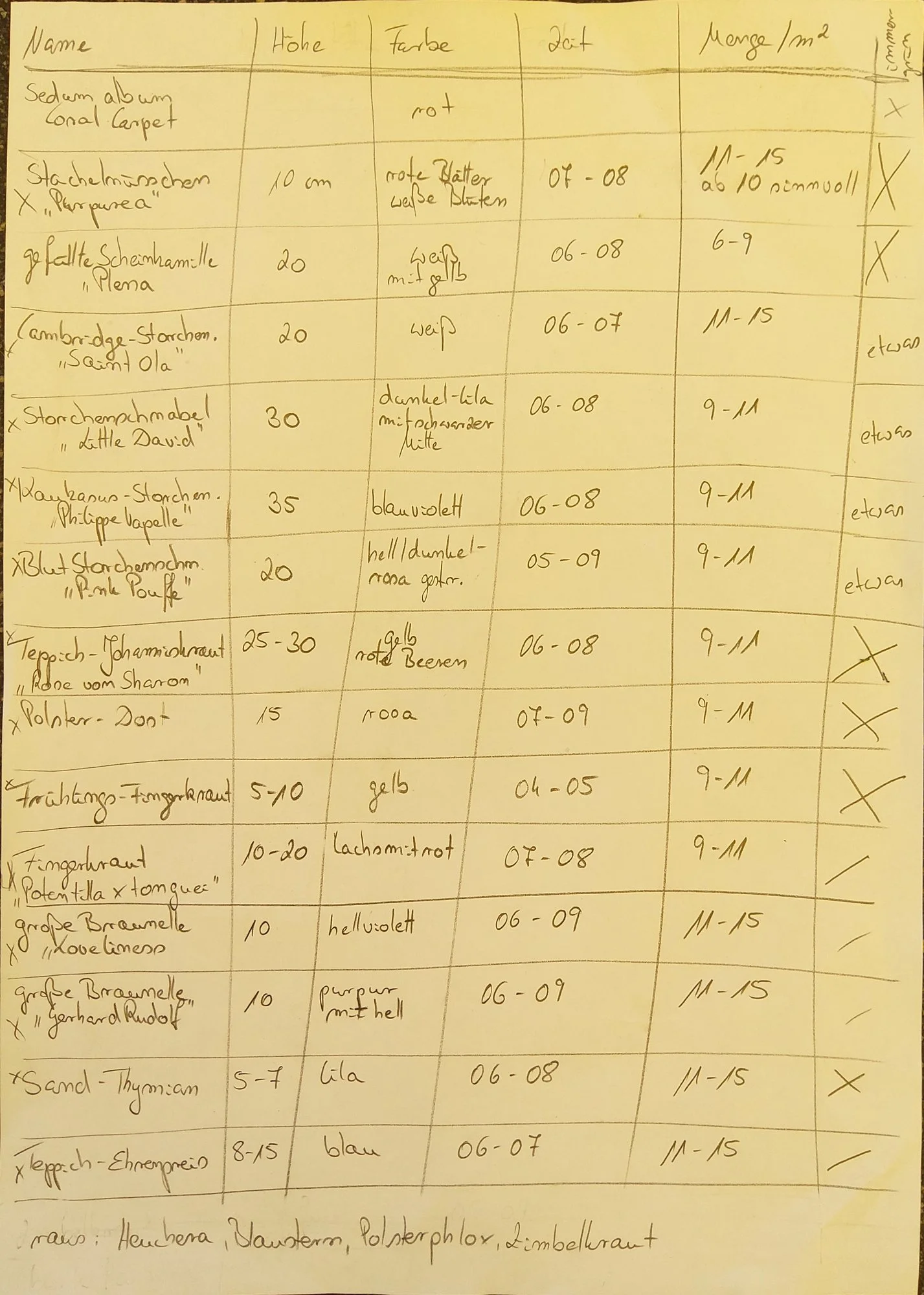 Ich bin froh, dass ich den Grundplan zu den Pflanzen im Beet gescannt und dann ausgedruckt habe, sonst wäre ich mittlerweile glaube ich verzweifelt.