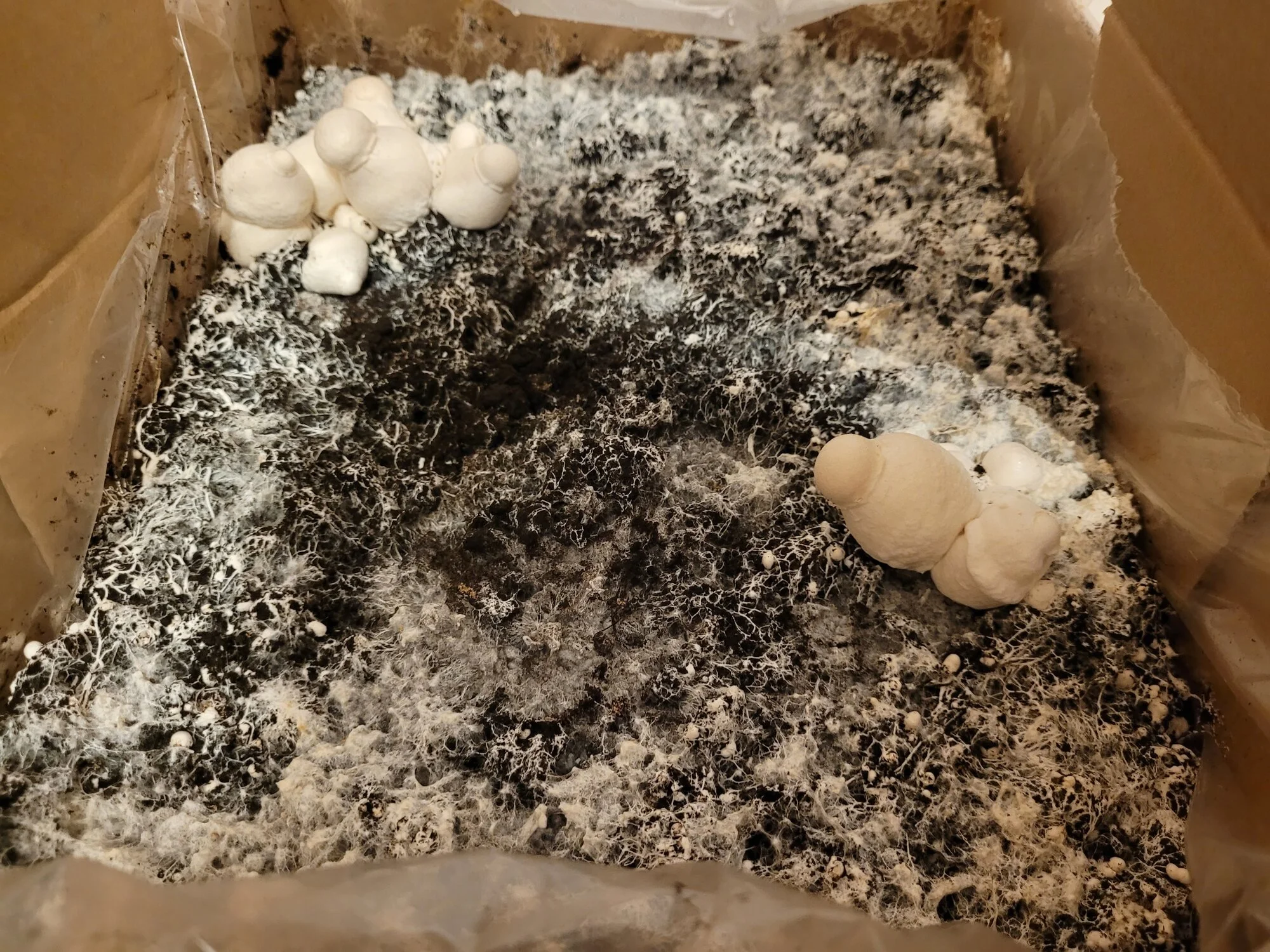 Mit Erde können Champignons nichts anfangen. Auch mit Kompost nicht. In Frankreich werden sie auf Stroh in den Kalksteinhöhlen der Loire gezogen. Dunkel, feucht, und Lignin zum fressen. So wollen sie das.Desshalb würde mich das interessieren wie du das ein dreivierteljahr hinbekommen hast