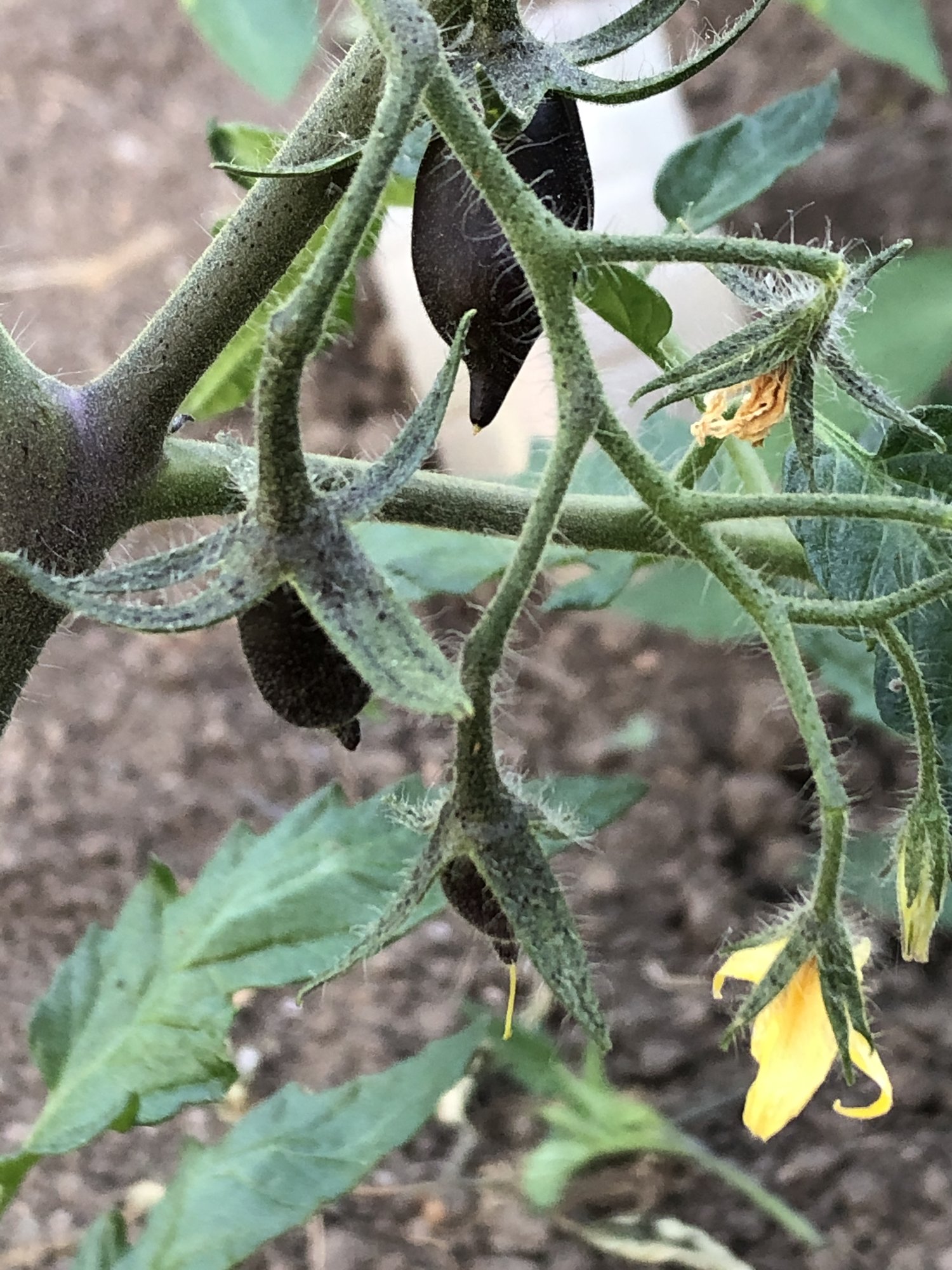 Im Folienhaus habe ich heute auch alle angebunden und außerdem Basilikum dazu gepflanzt.