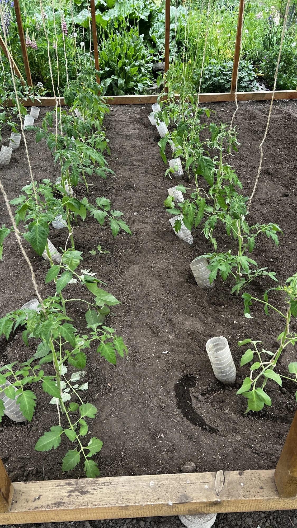 Ich mache das nur, damit nicht soviel Wasser wegläuft. So kann ich sparsamer gießen.eventuell auch deine Flaschenkonstruktion, für die Tomaten im Beet.