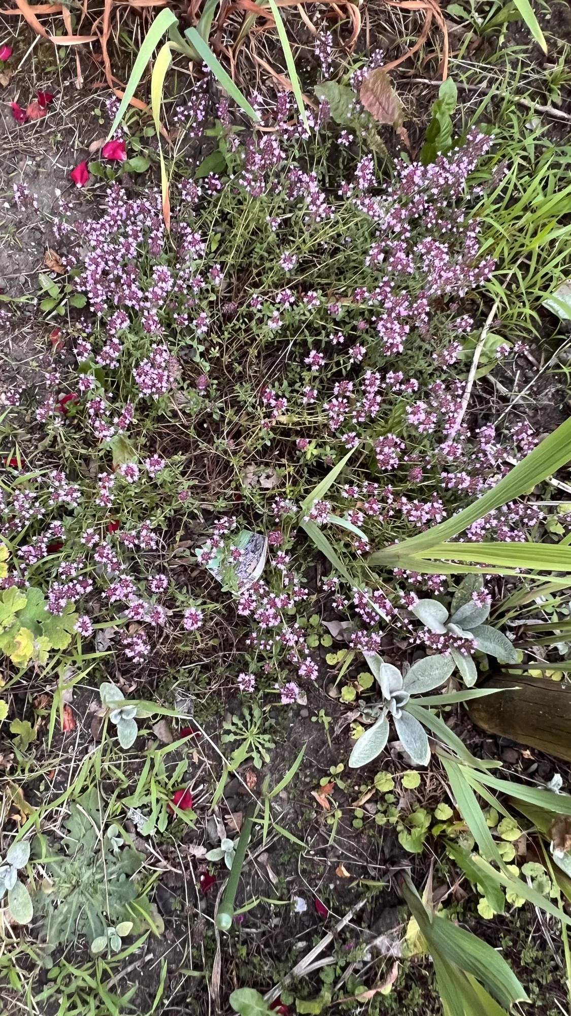Der Teppichthymian blüht hübsch.