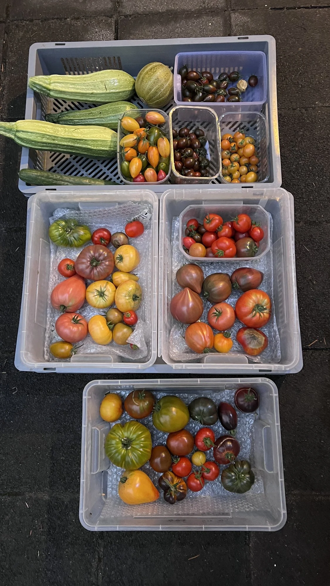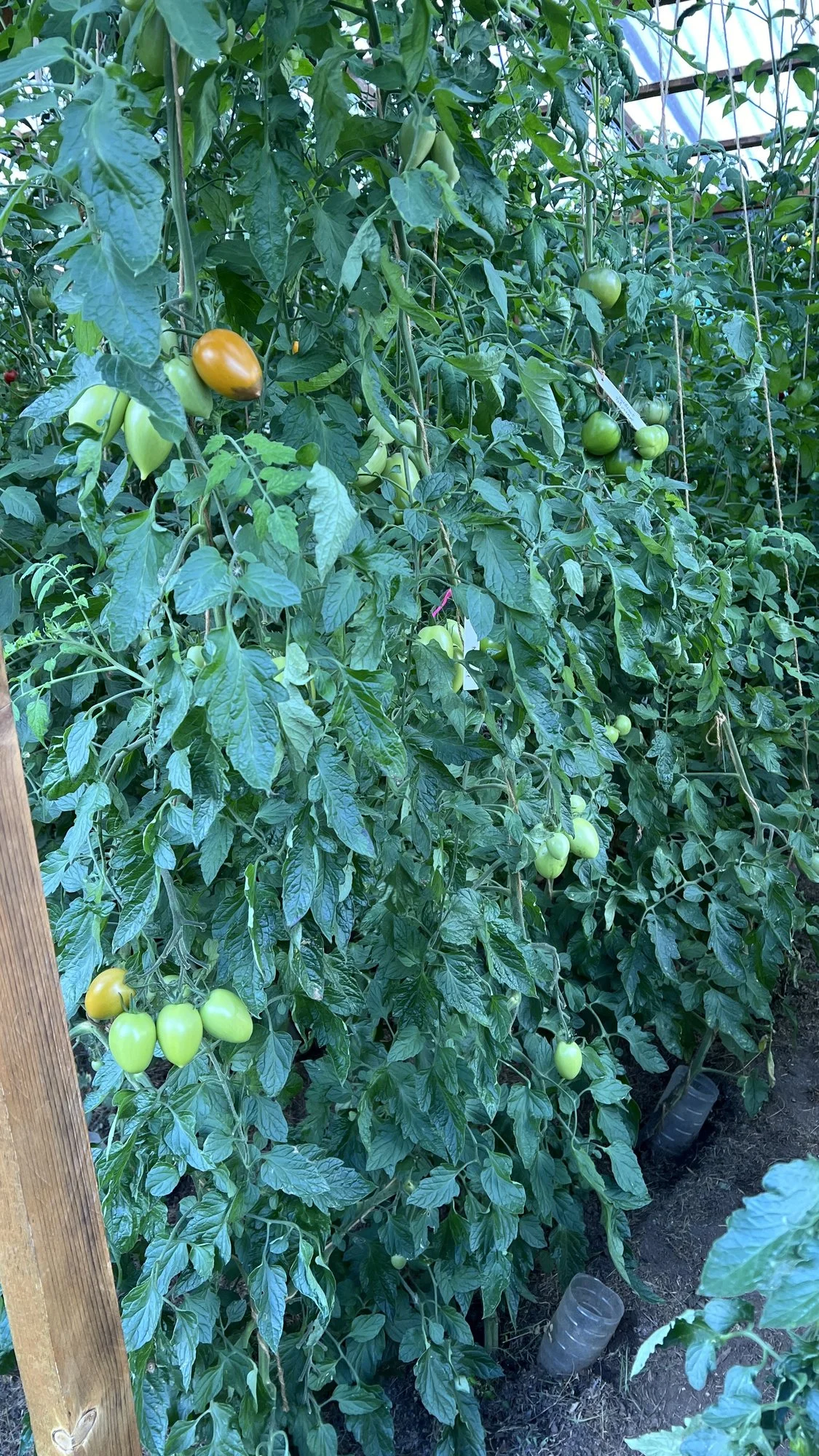 Ich gehe von einem durchschnittlichen Ertrag von 2 kg je Pflanze aus. Habe auch kleine im Topf, die nur paar Hände voll tragen und manche Fleischtomate, die nur 1-2 Früchte hat. Aber das wiegen andere dafür auf, die 5 kg und mehr haben.