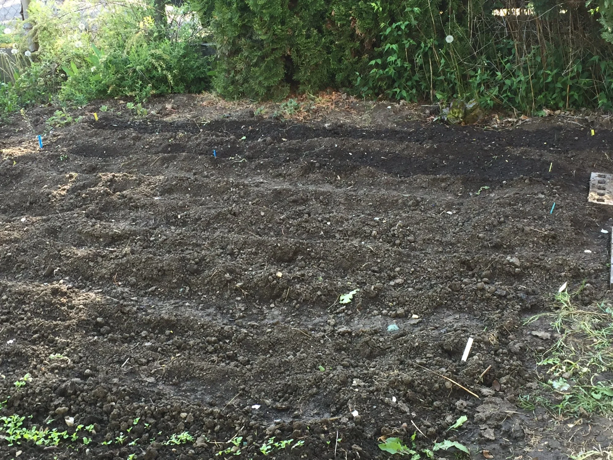 Die Erleichterung ist grade bei lehmigem Boden wirklich groß und nach dem Fräsen macht es fast schon Spaß die Gräben für Kartoffeln auszuheben, zuzuschütten und den ersten Hügel zu machen.