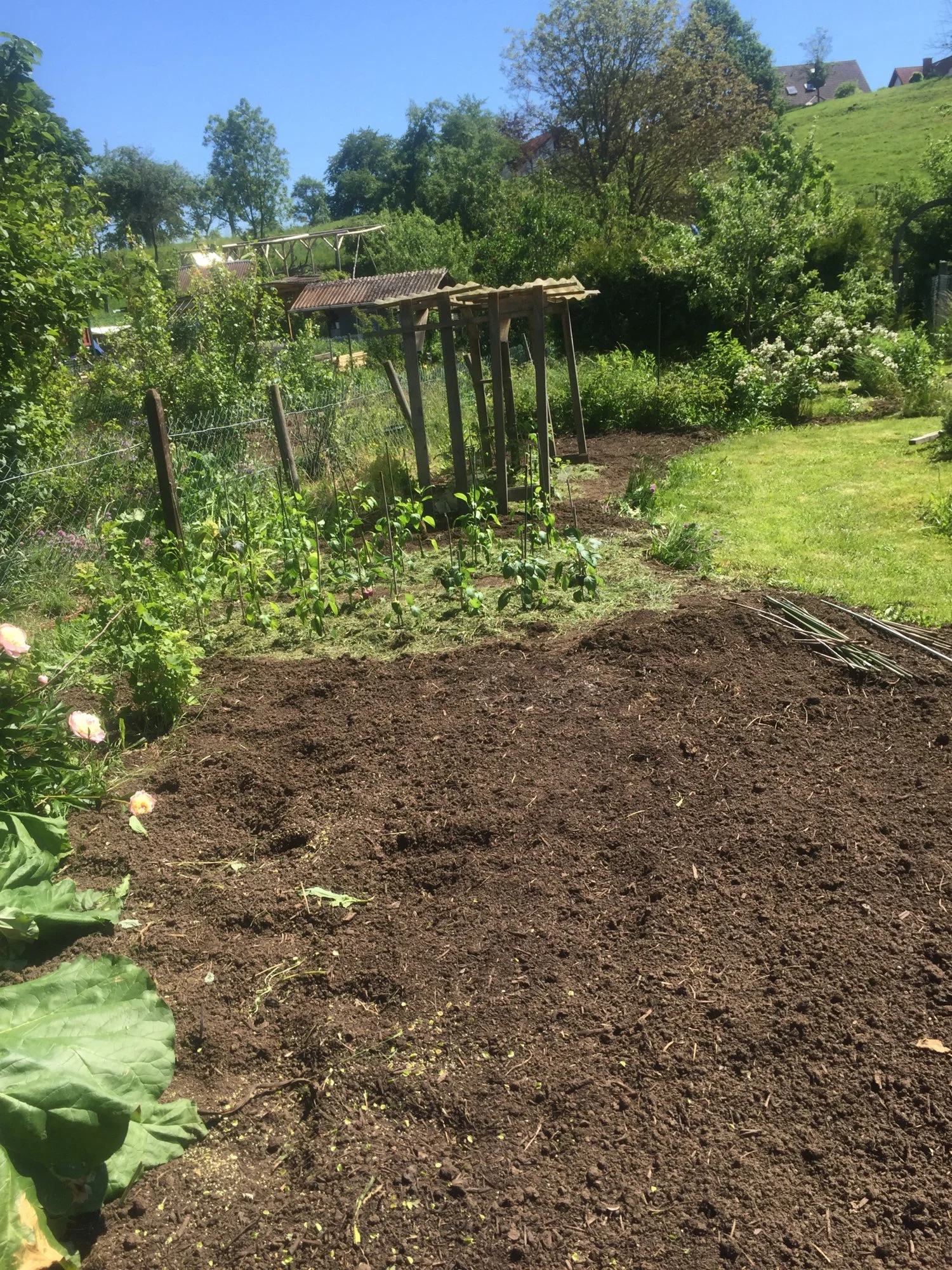 Etwas Platz ist noch. Die Auberginen habe ich noch nicht gesetzt. Es ist Gewitter angesagt, Womöglich ist Hagel dabei. Da setze ich sie lieber erst Morgen. Dazu auch dann den Kürbis und die Melonen.