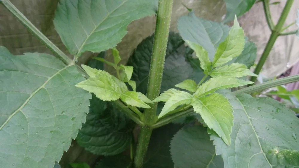 zum Thema:im Moment bin ich auch noch am rätseln ich würde aber auch nicht auf holunder tippen da passt einiges nicht,vielleicht doch noch mal paar bilder machen einzeln vom blatt und stengel.