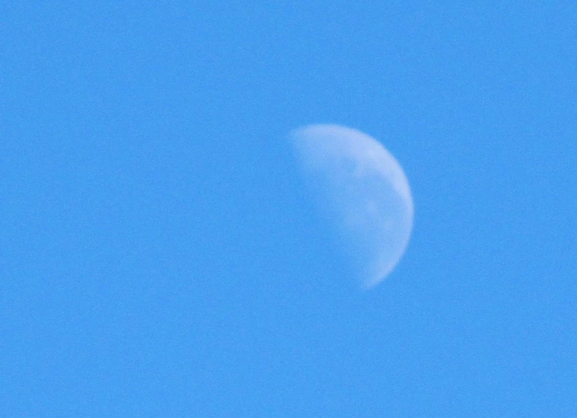 Schoen der Mittagsmond, muecke. Er nimmt ja jetzt ab, bei uns "liegt" er dann andersrum, d, h. , die Sichel zeigt zur anderen Seite!