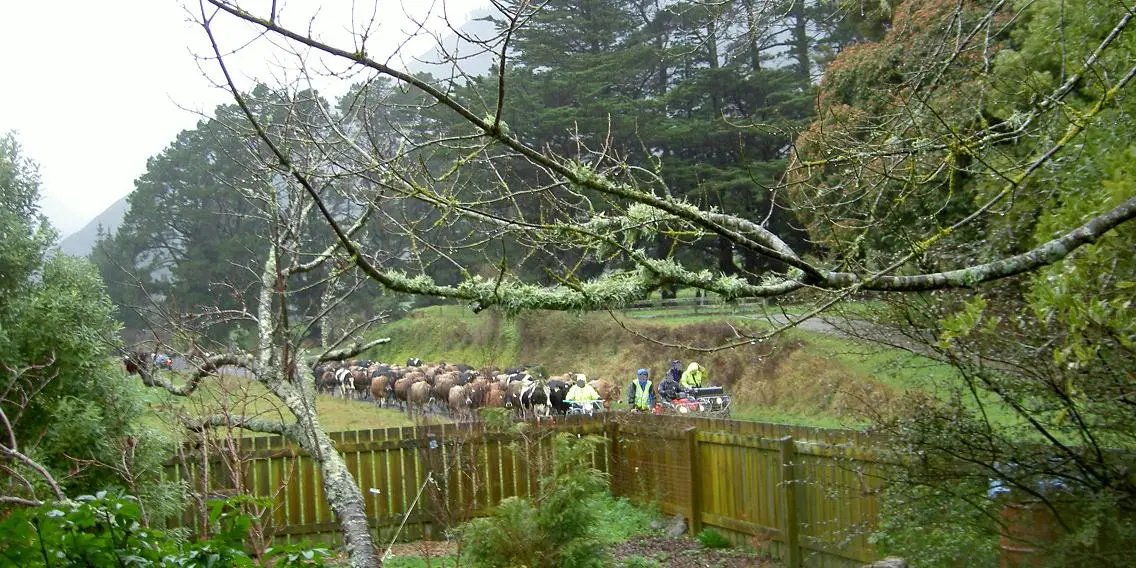 Ausserdem faehrt jemand vorneweg, entweder mit dem Auto, Traktor oder Farm Motorbike, Fahrrad oder auch per Pferd, graphics-cowboy-270057.gif um alle eventuell offenen Tore, Eingaenge usw. zu schliessen oder mit Stricken zu sichern, so dass alle schoen auf der Strasse bleiben muessen. Autofahrer muessen natuerlich warten, bis sich eine Gelegenheit bietet, dass sie an der Herde vorbeikommen. Meistens sind es so zwischen 150 und 300 Tiere.