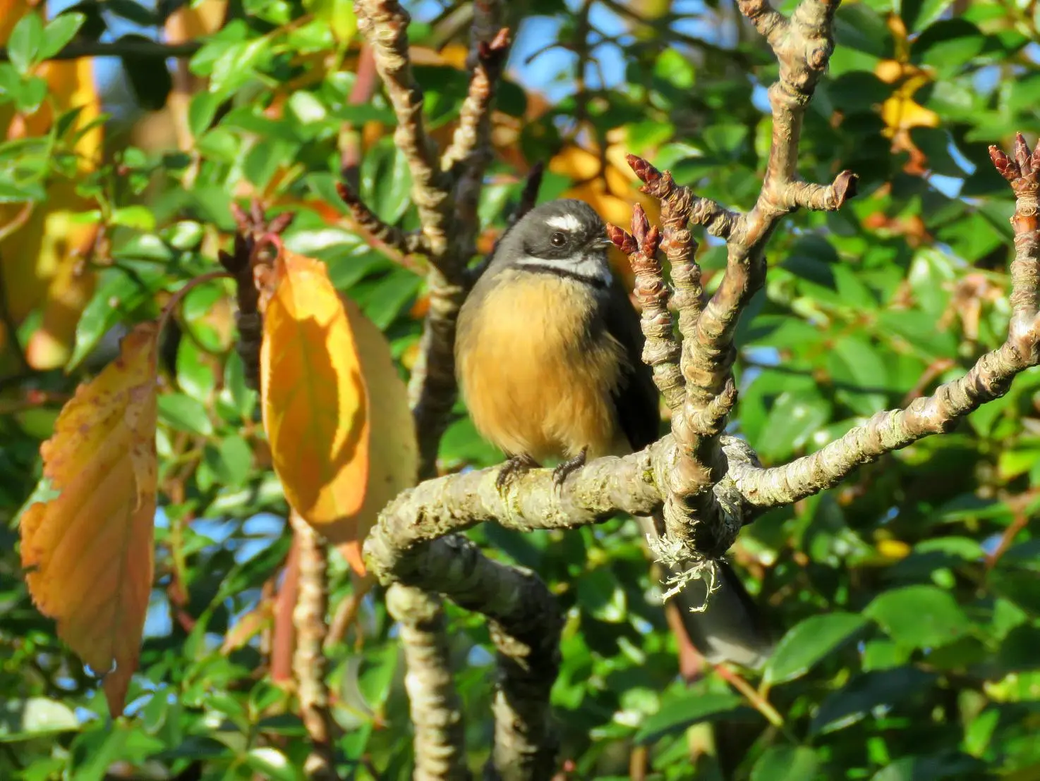 Es ist ein Fantail = Faecherschwanz. Er ist eigentlich IMMER in Bewegung, es ist sehr schwer, ihn zu knipsen; speziell wenn er die Kamera sieht ist er sofort weg,