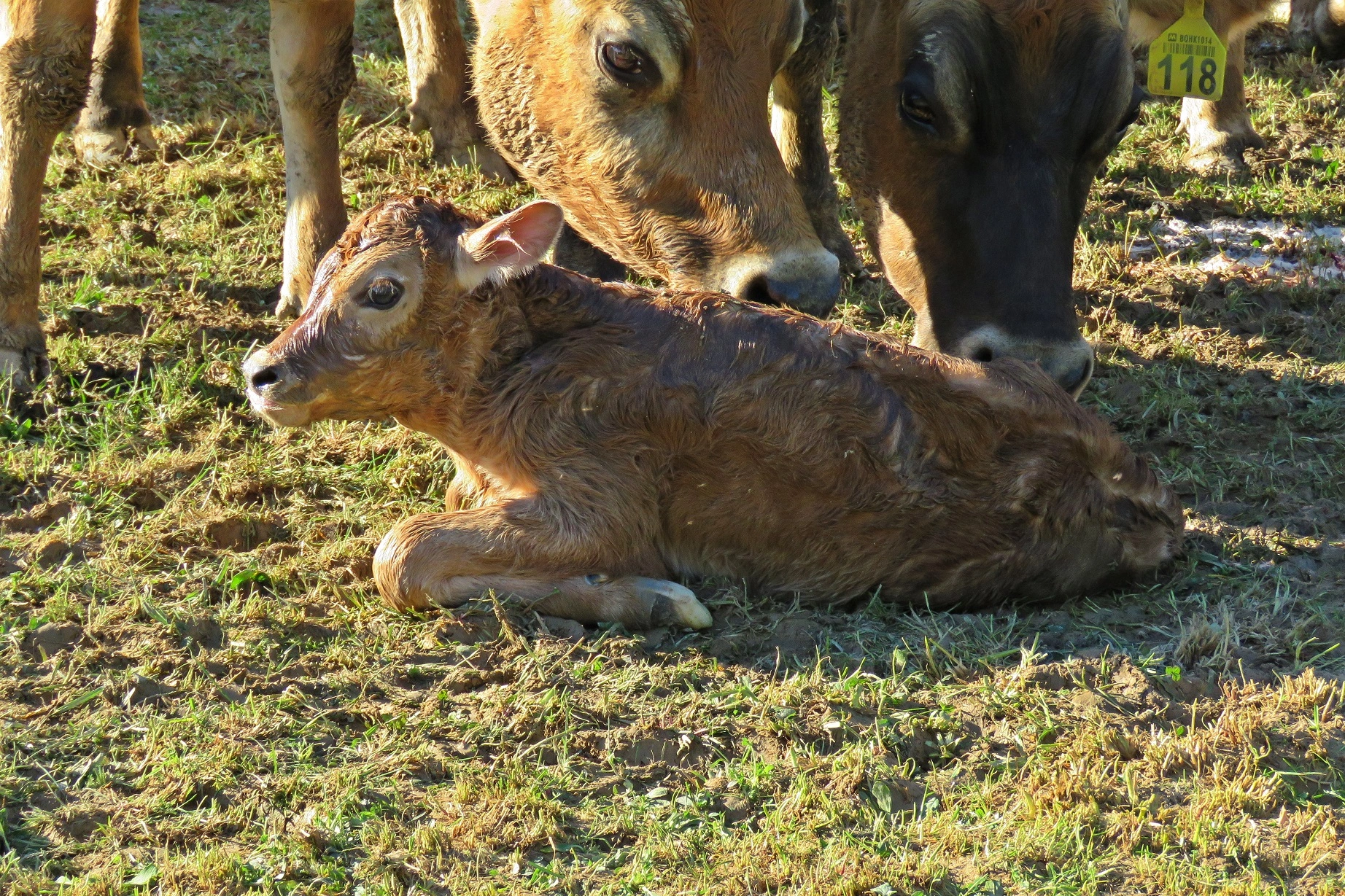 Dieses spezielle Kaelbchen haben wir ein wenig "unterstuetzt", es war gleich nach der Geburt irgendwie unter dem elektrischen Zaun durchgerutscht und kam nicht mehr zurueck.