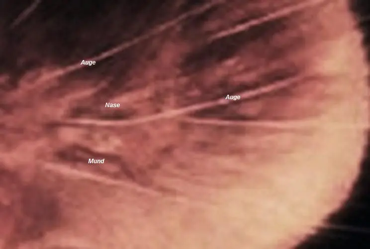 Ich sehe das küken als Kopf in der oberen linken bache- der Schnabel ist direkt links an der backe und der dunkle Schatten (also die backe) ist der Körper.