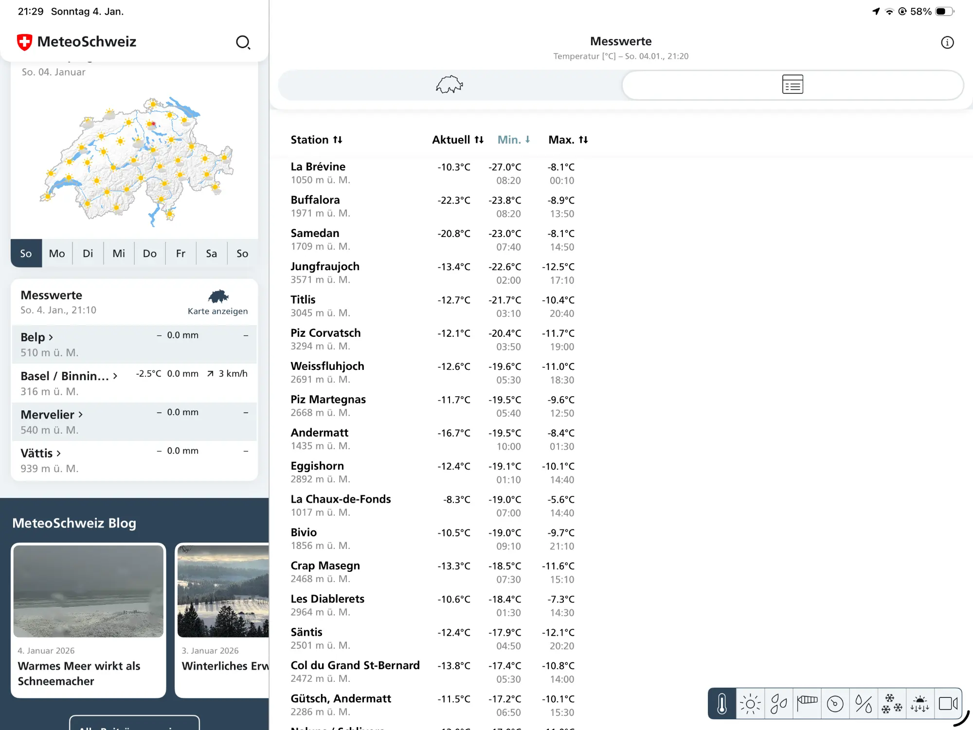 Wir haben auf dem Heimweg in der Linthebene -13 °C gehabt (gemäss Autocomputer).Habe gerade geschaut was La Brévine die nächsten Tage erwartet... -15, geht ja noch für das Sibirien der Schweiz...sind nur 5 Grad weniger als bei uns.