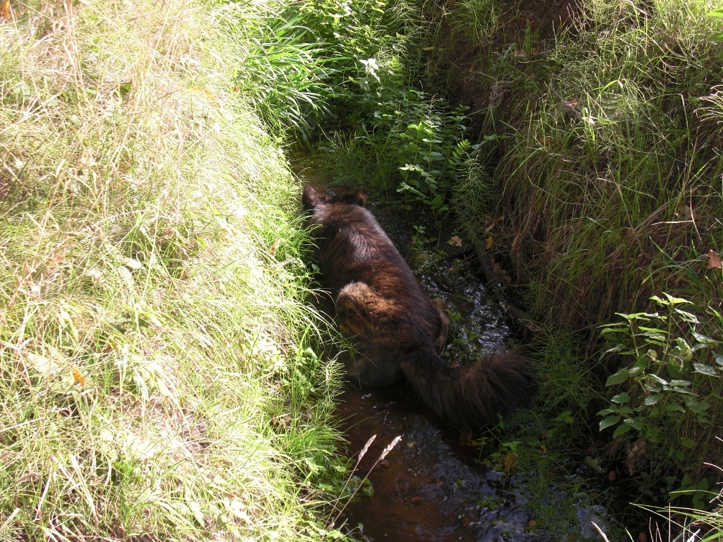 Der Wasserstand ist nicht sonderlich tief in dem Graben, aber um den Bauch einzuweichen langt es locker