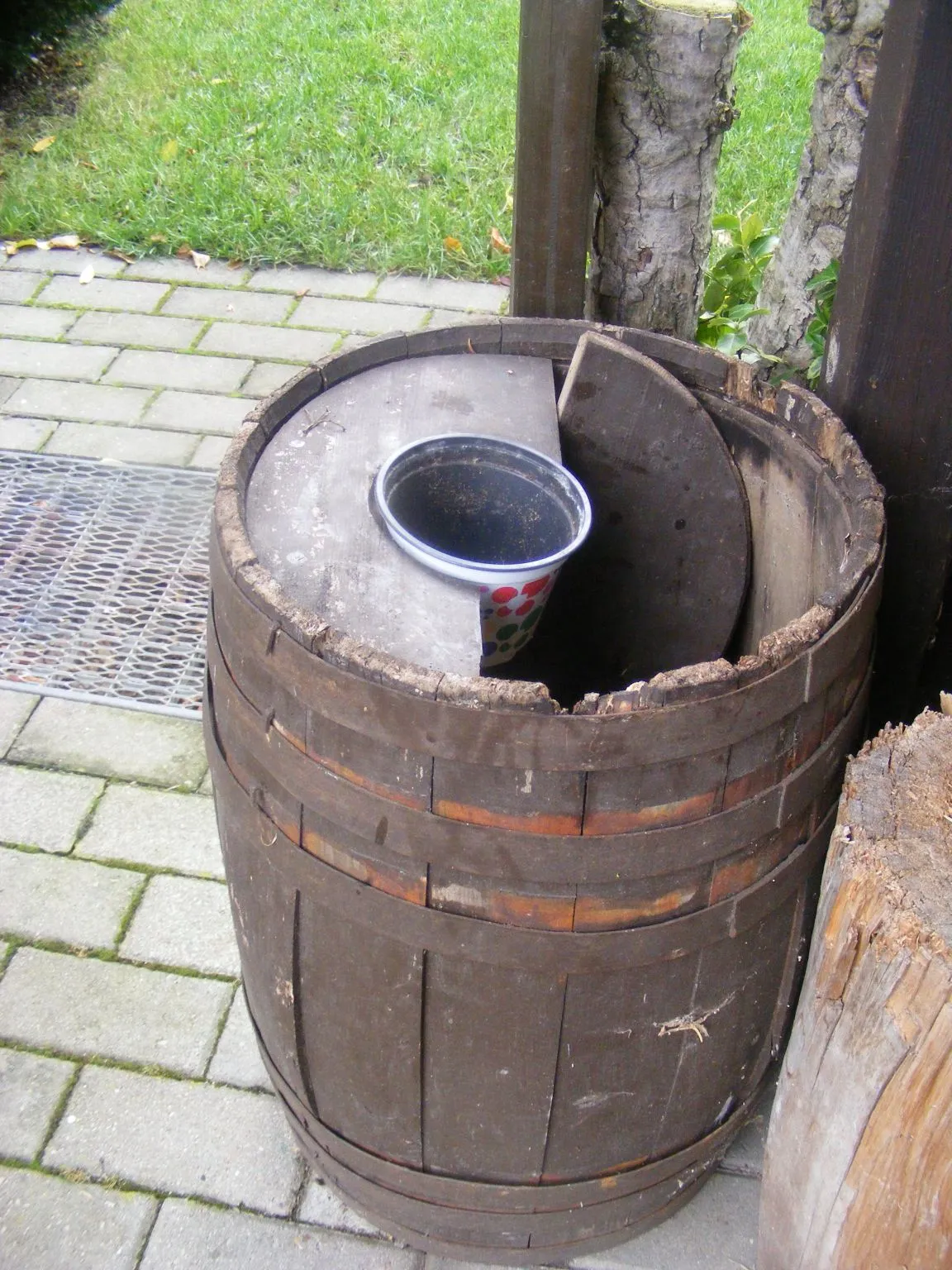 Und noch was. Im Garten steht ein altes Holzfaß, welches ich immer als Ständer für meine draußen übersommernden Zierspargel genutzt habe.