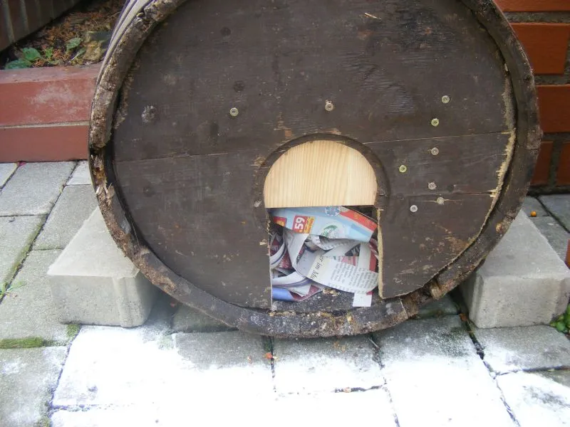Keine Ahnung, wer im Faß wohnt. Durch das Türchen passen nur Mäuse, Ratten, Marder und Igel. Wobei ich mir bei den ersten drei das nicht wirklich vorstellen kann, daß die da drin wohnen.