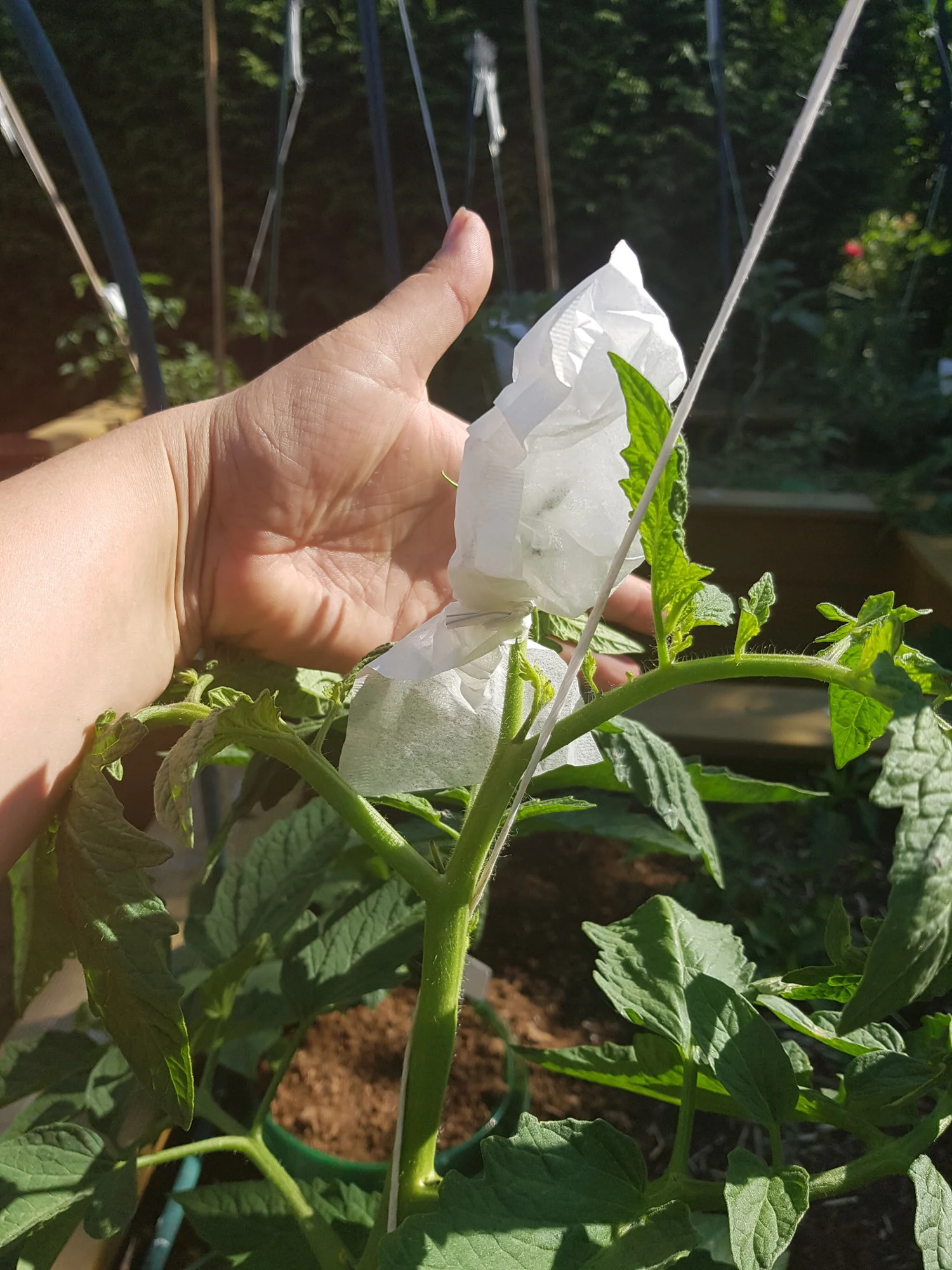 Edit: Muss denn soviel Licht an den Trieb kommen? Zum Aufblühen braucht die Pflanze Wärme - bekommt sie auch im violetten Beutel. Geschüttelt wird sie zur Befruchtung, egal wie die Beutelfarbe ist und zum Abreifen braucht es auch eher Wärme als Licht. (Aber bis dahin kann man den Beutel auch wieder entfernen. )