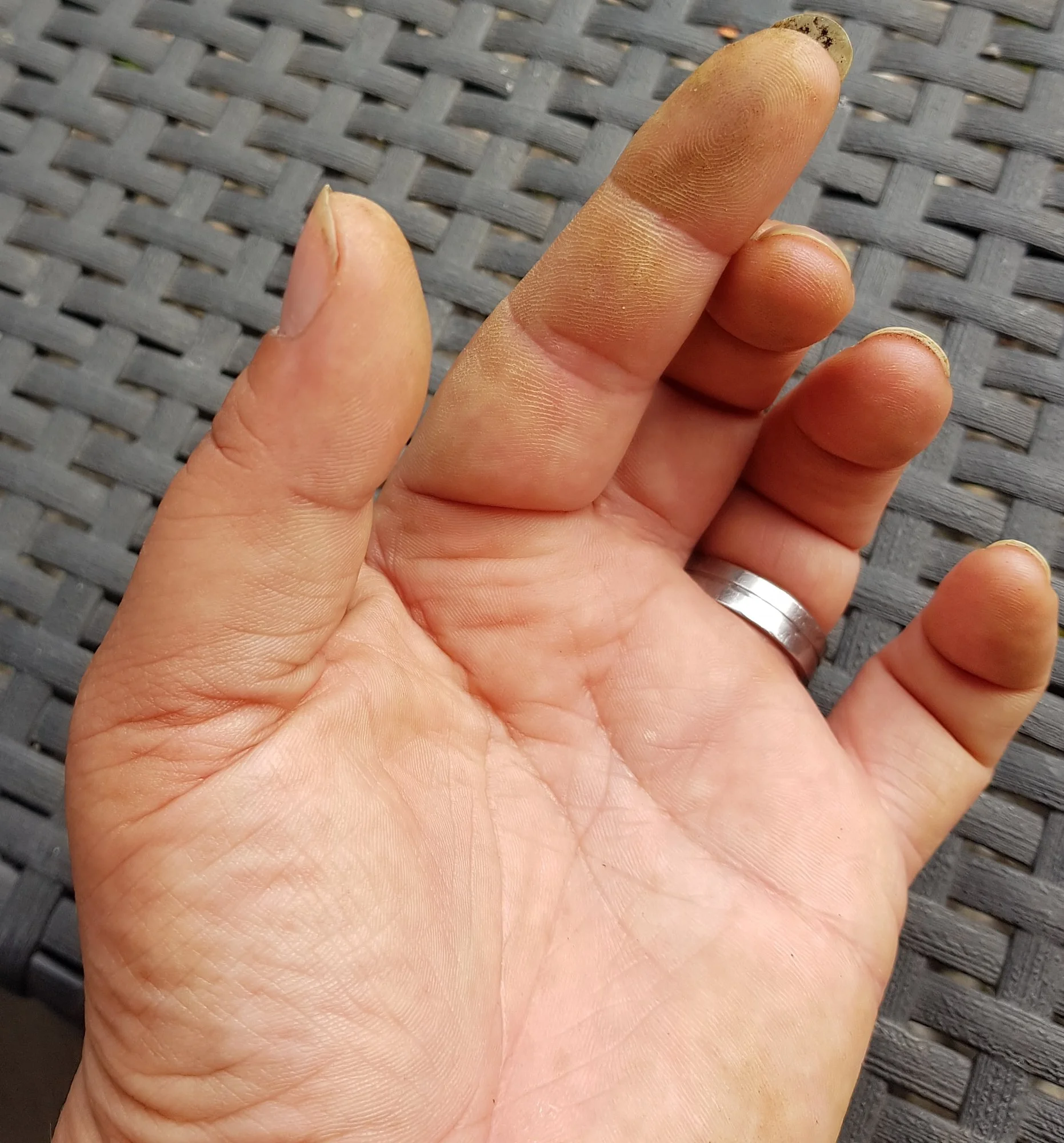 Von der Farbe deiner Finger hast du auf jeden Fall mit deinen Tomatenpflanzen handtiert.