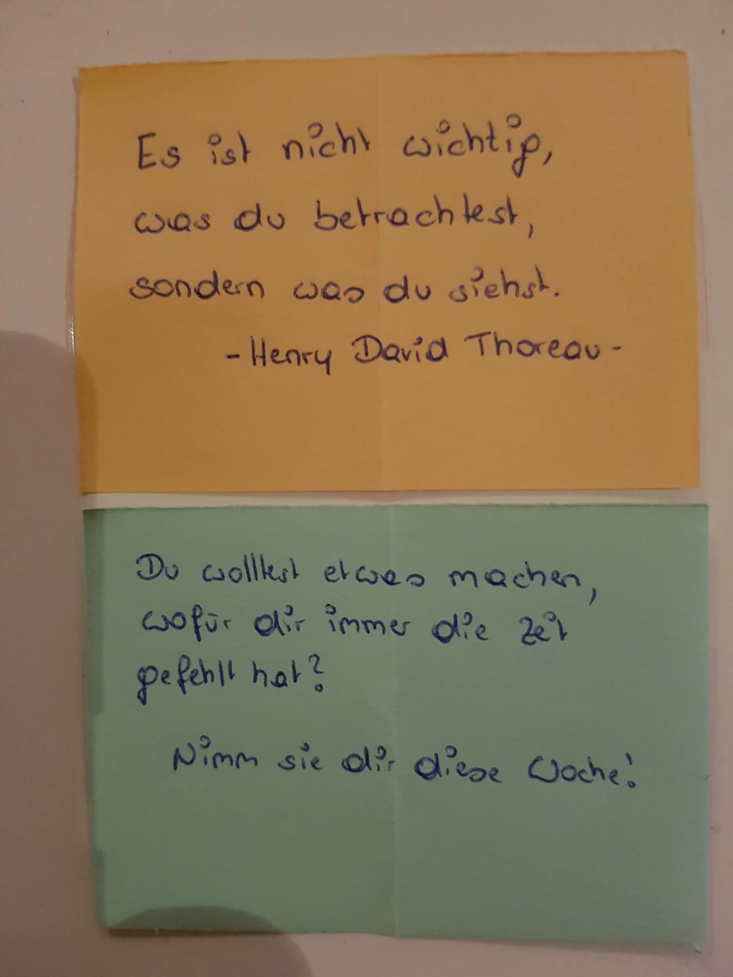 Da ich ja ein Faible für die Ungewöhnlichkeiten habe, ist die Entscheidung gereift, dass ich alle zwei Wochen zwei Zettel öffne, je ein grünes und ein oranges.