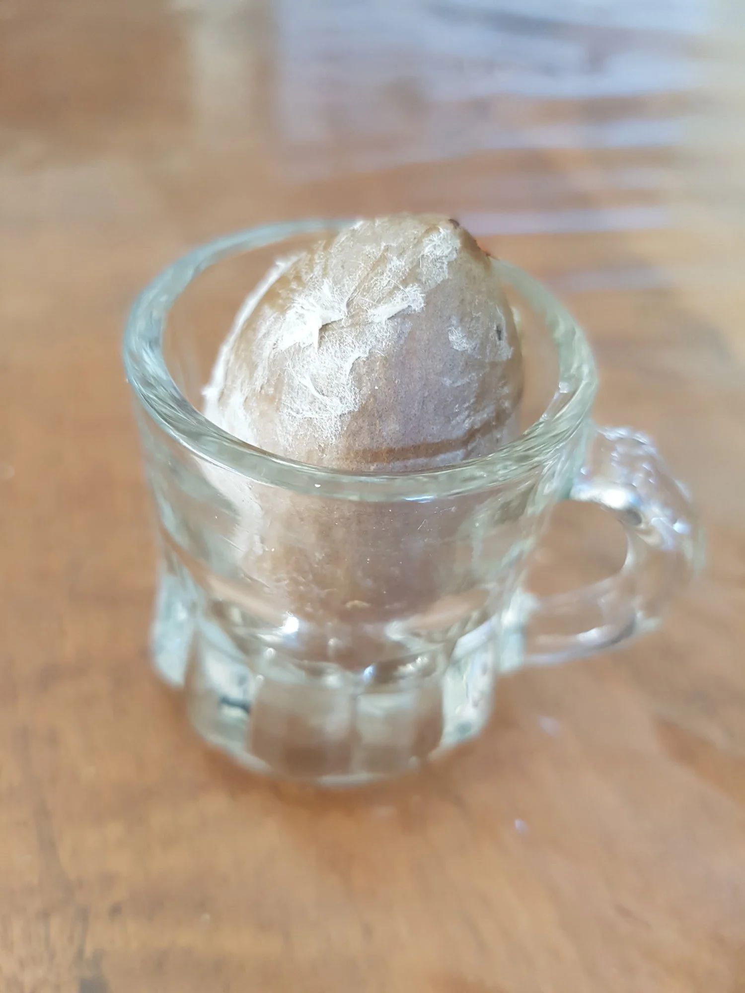 Ja, genau, das sind zwei Eierschalen. (Ich trockne die immer) Ich habe die Spitze abgenommen und dann passte es :cool: