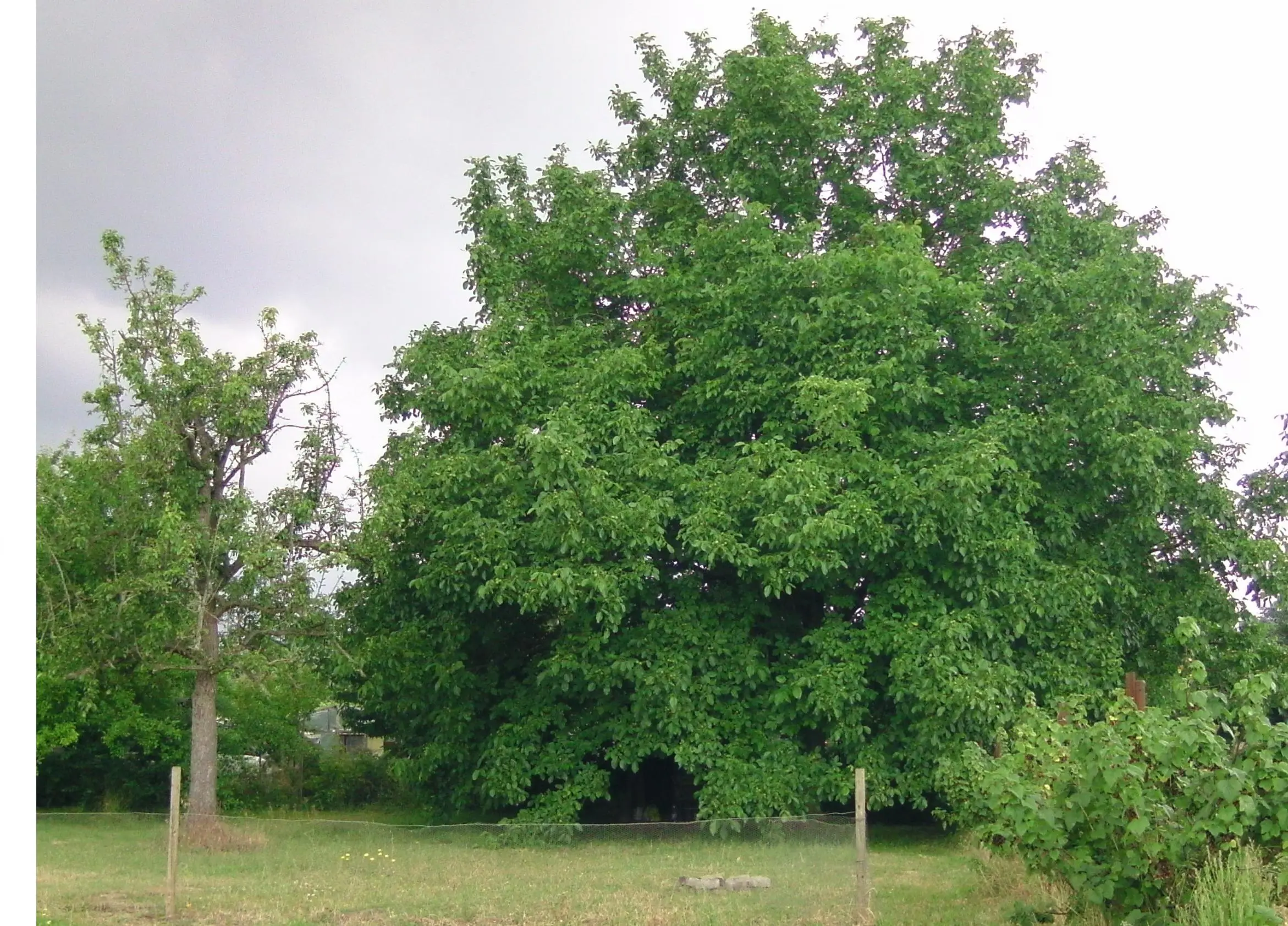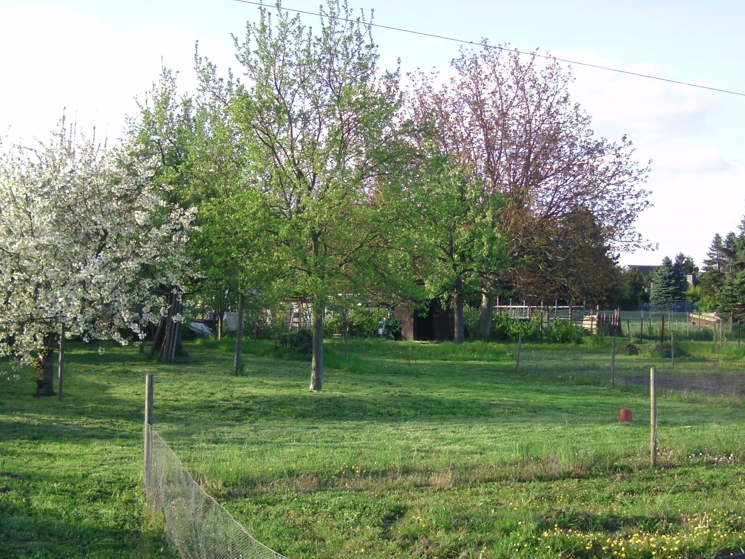 Auf 30mx70m stehen unter anderem 2 Süßkirsch- 2 Sauerkirsch- 2 Pflaumen- 2 Zwetschgen- 1 Birn- 1 Apfel- und 1 Walnussbaum. Dazu eine ganze Reihe Johannisbeeren und Stachelbeeren. Die Bäume sind teilweise schon sehr alt, die Sauerkirschen wohl an die 80 Jahre, tragen aber immer noch Früchte. Die Bäume sehen allgemein gesund aus, soweit wir das beurteilen können. Die Bäume wurden aber die letzten Jahre nicht gepflegt oder geschnitten, und durch den langen Wildwuchs sind sie aus der Form geraten und teilweise auch sehr hoch geworden.