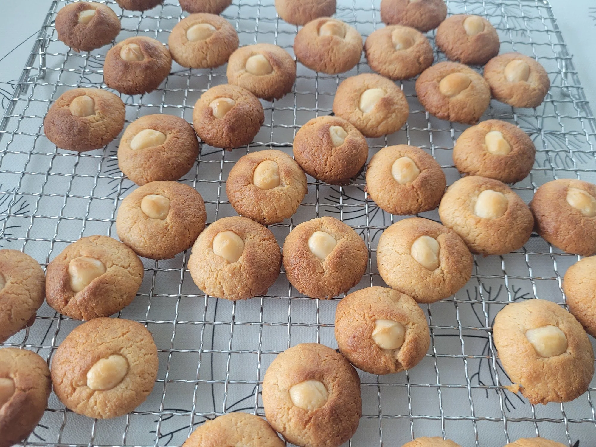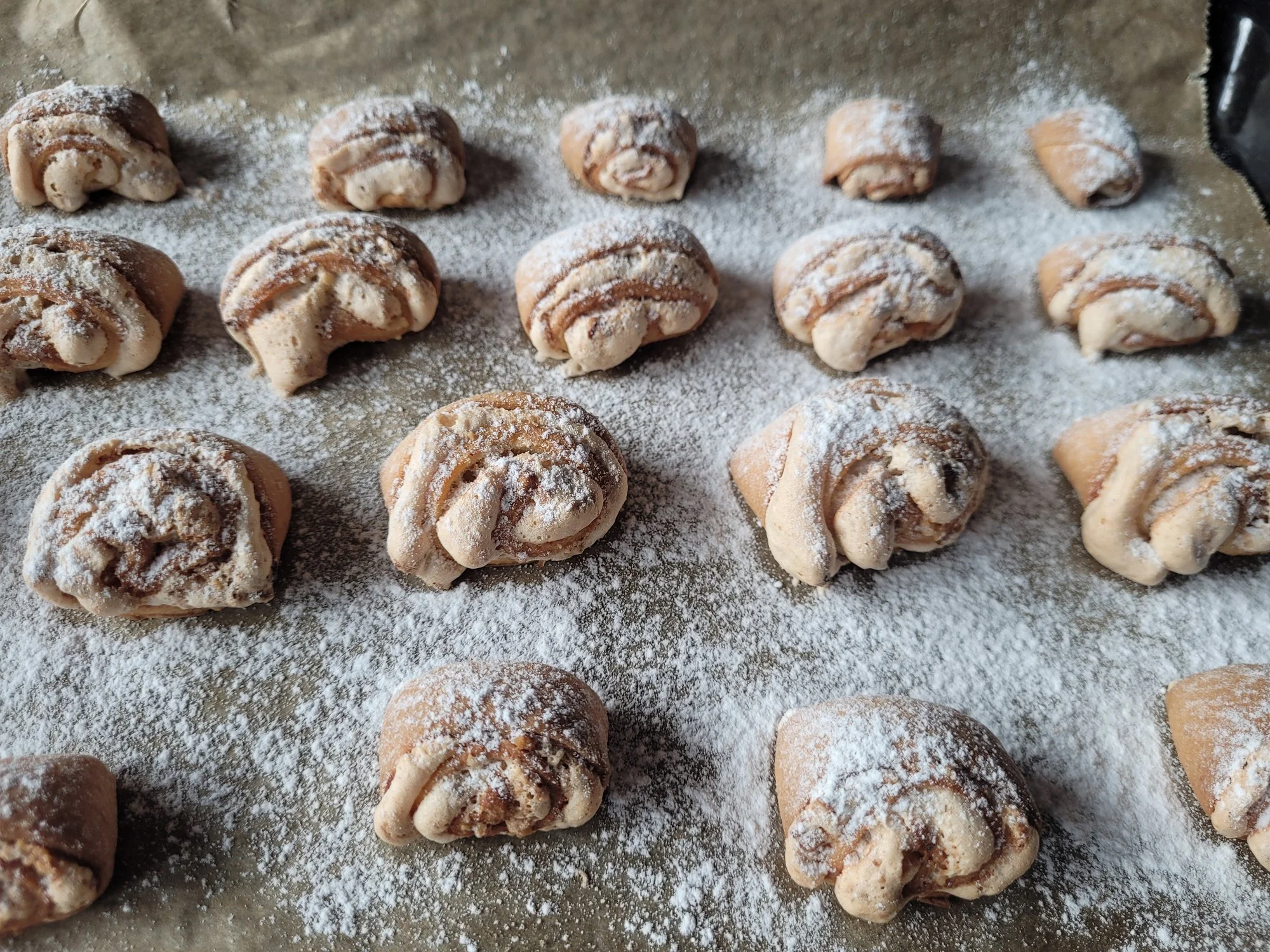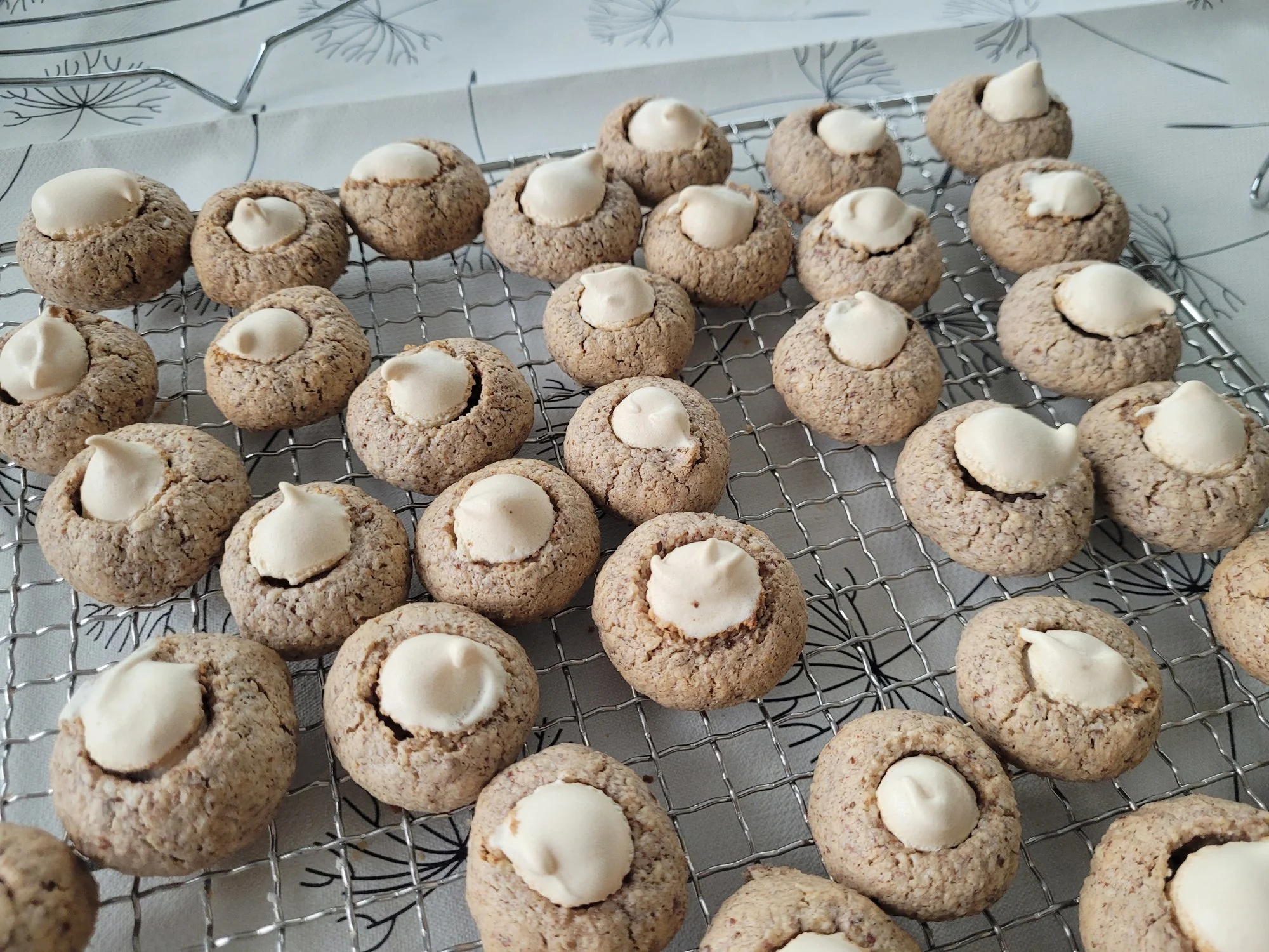 Die Walnussküsse stehen kühl und kommen morgen früh in den Ofen