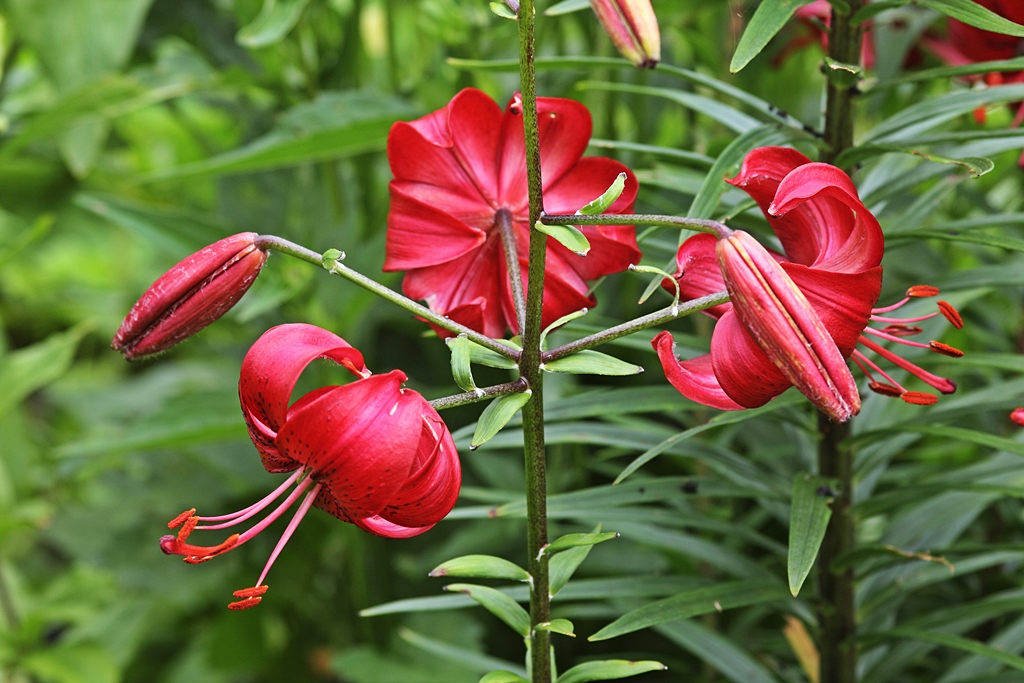 die orangefarbenen Lilien am Zaun
