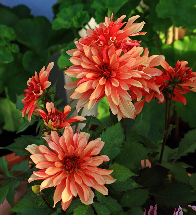 oder die orange-roten Dahlien