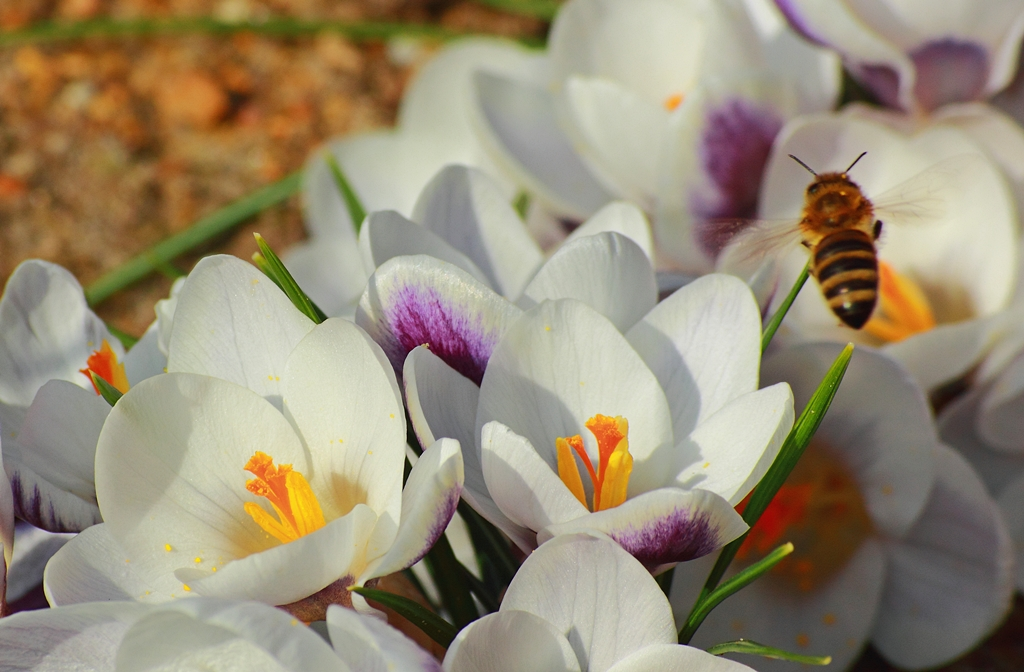 Wildbienbe an weiss_lila Krokussen_1024.webp