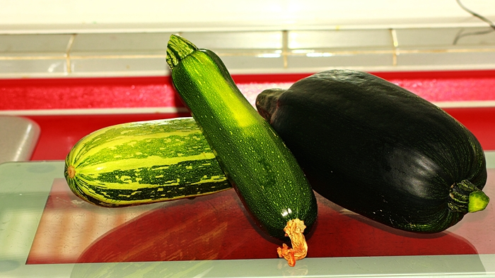 erste Ernte_drei Zucchini_grün_gelb_700.webp
